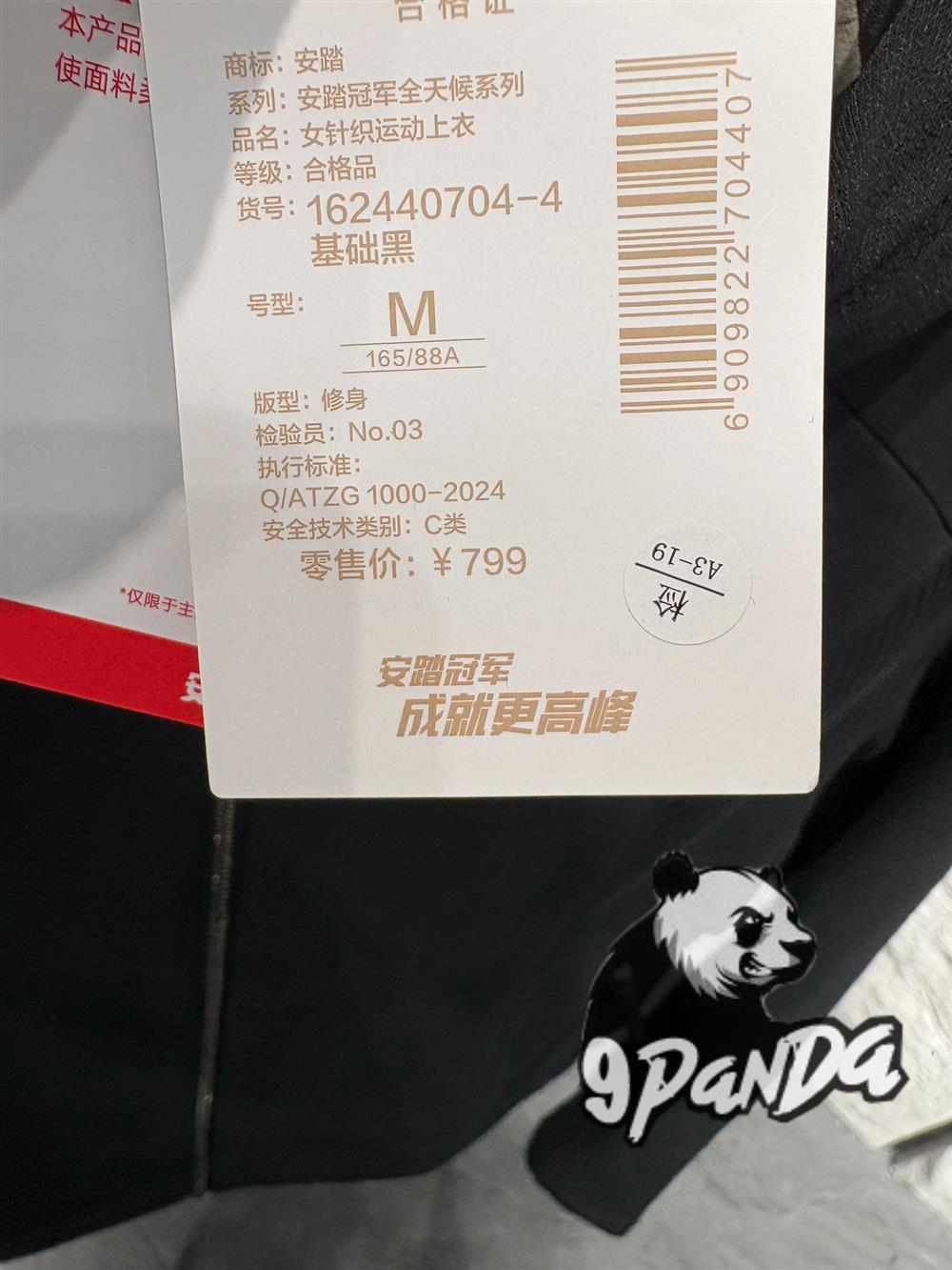 安踏冠军全天候女连帽卫衣冬运动保暖外套正品162440704