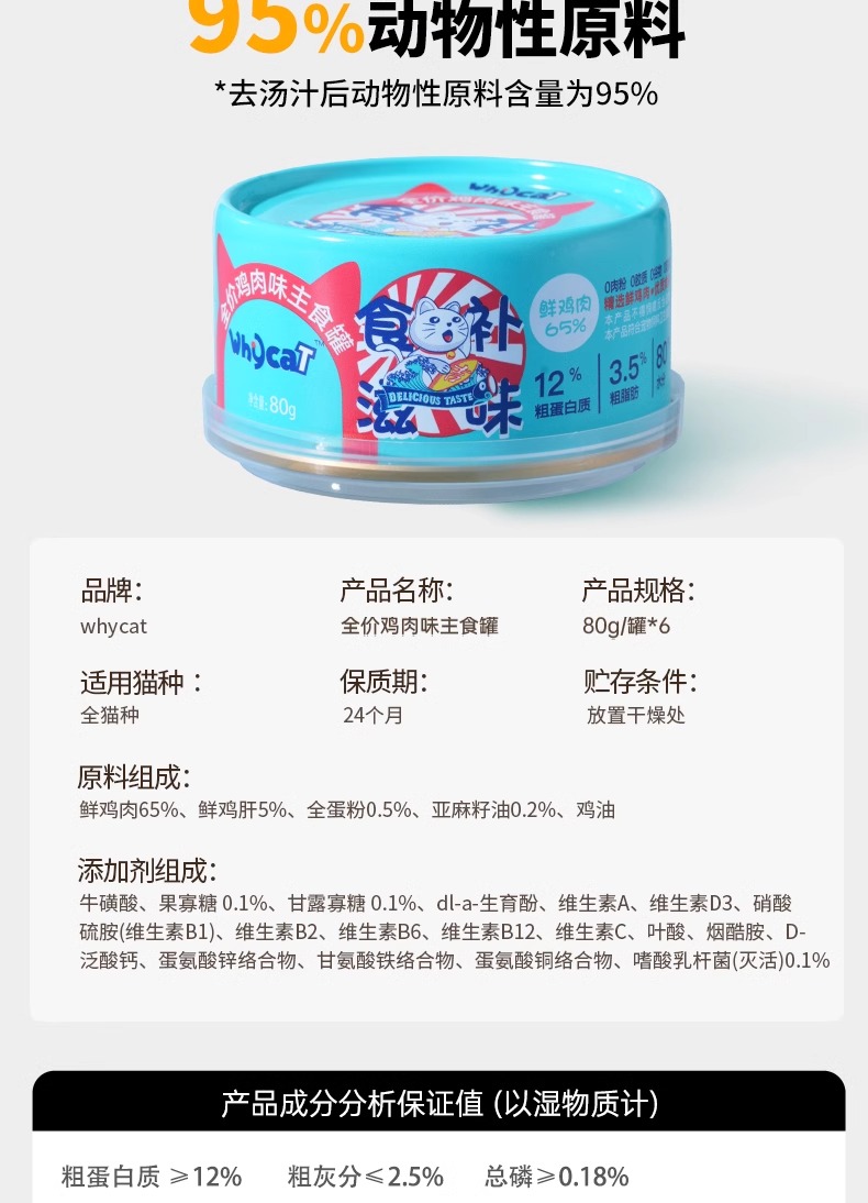 whycat鸡肉罐头猫咪鲜肉营养