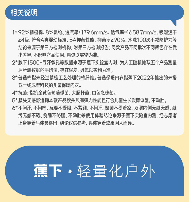 蕉下儿童抗菌棉质内衣套装(低暖)CT27224