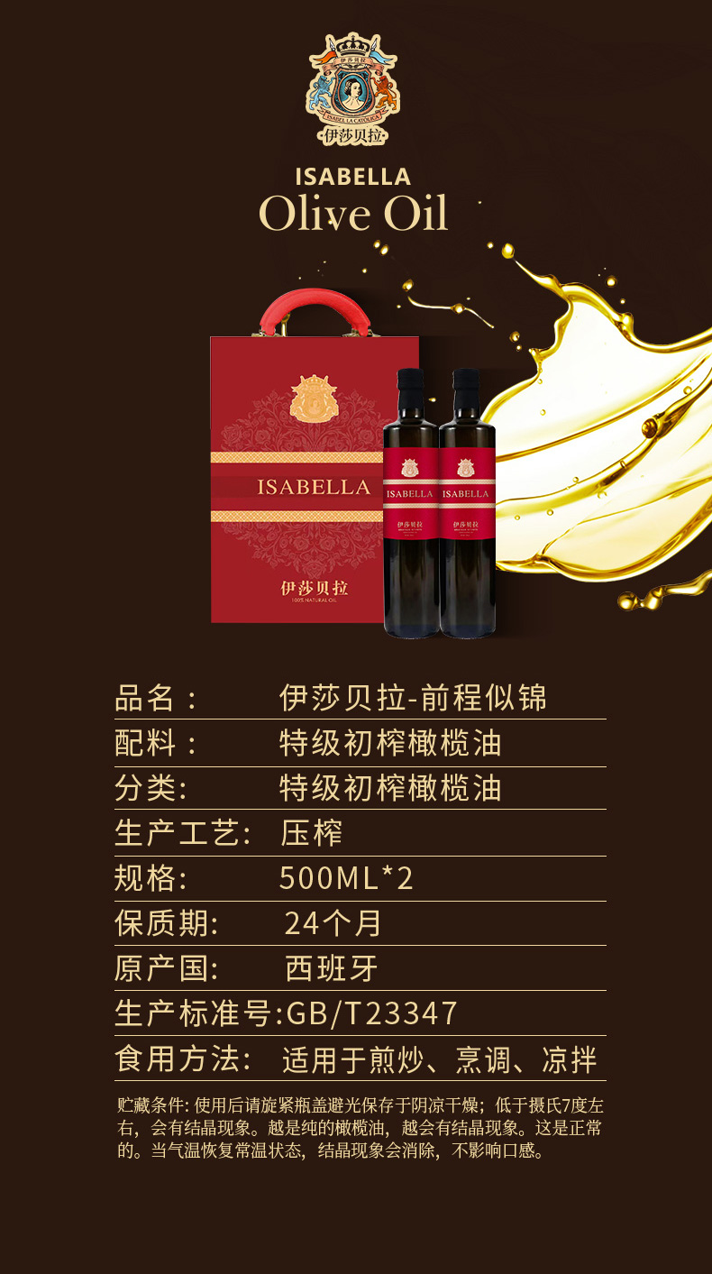 伊莎贝拉 ISABELLA-前程似锦 特级初榨橄榄油500ml*2