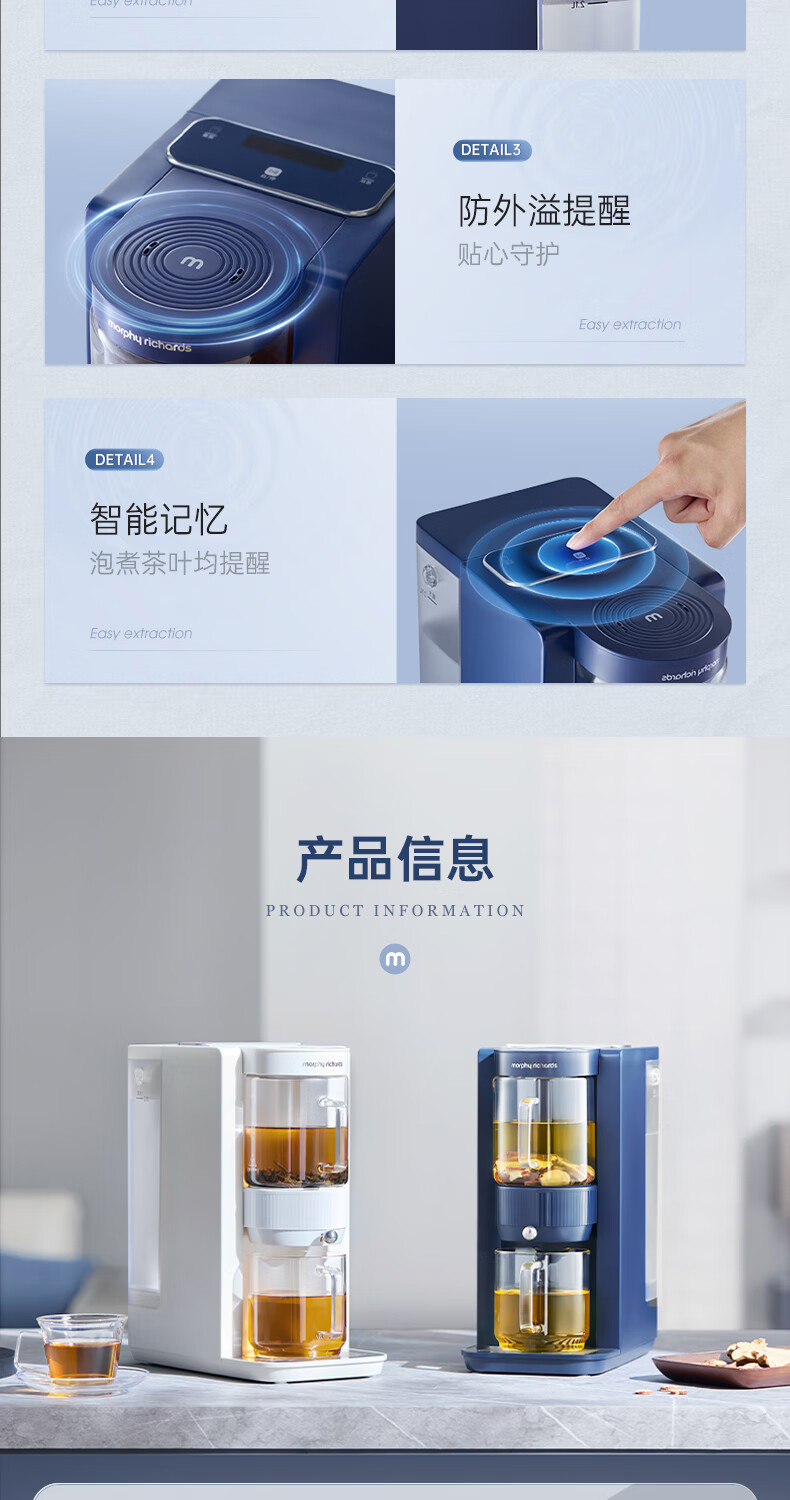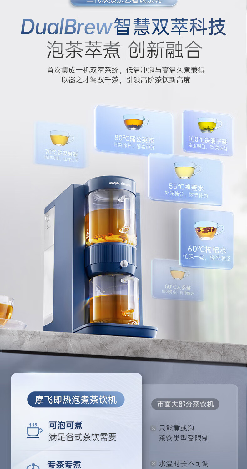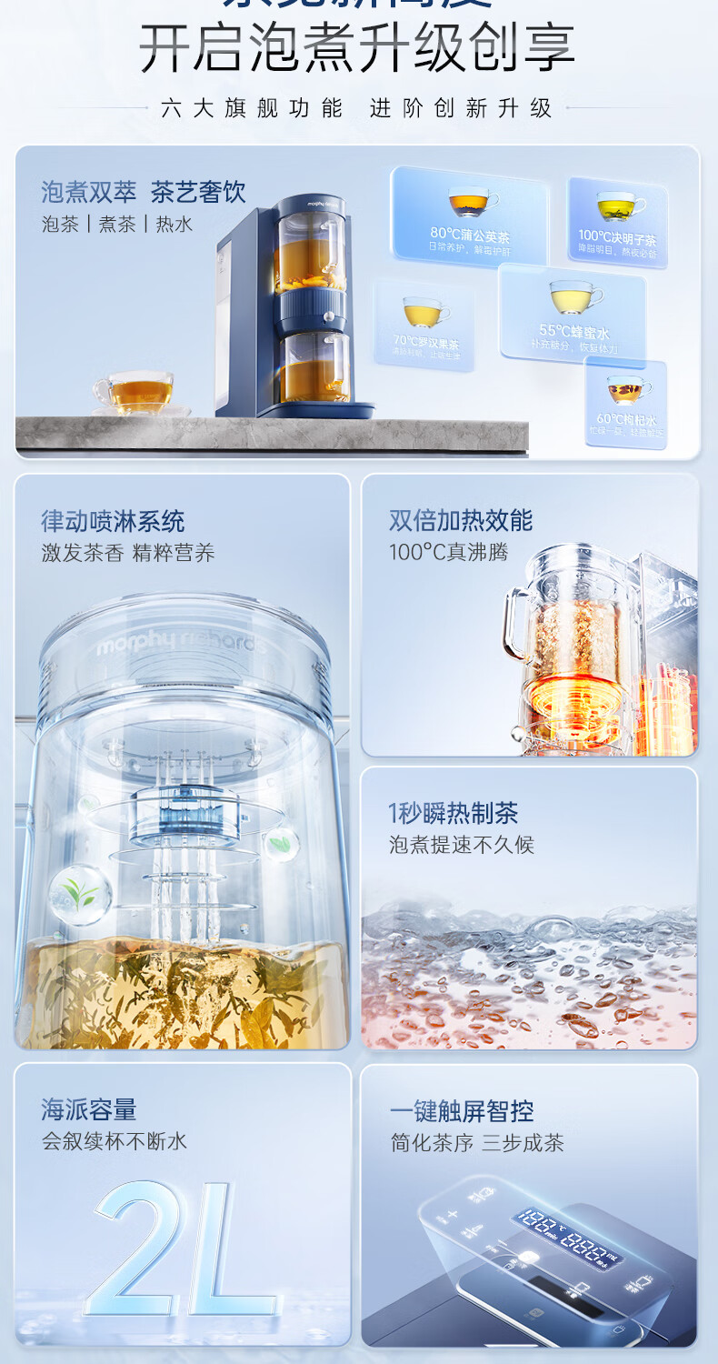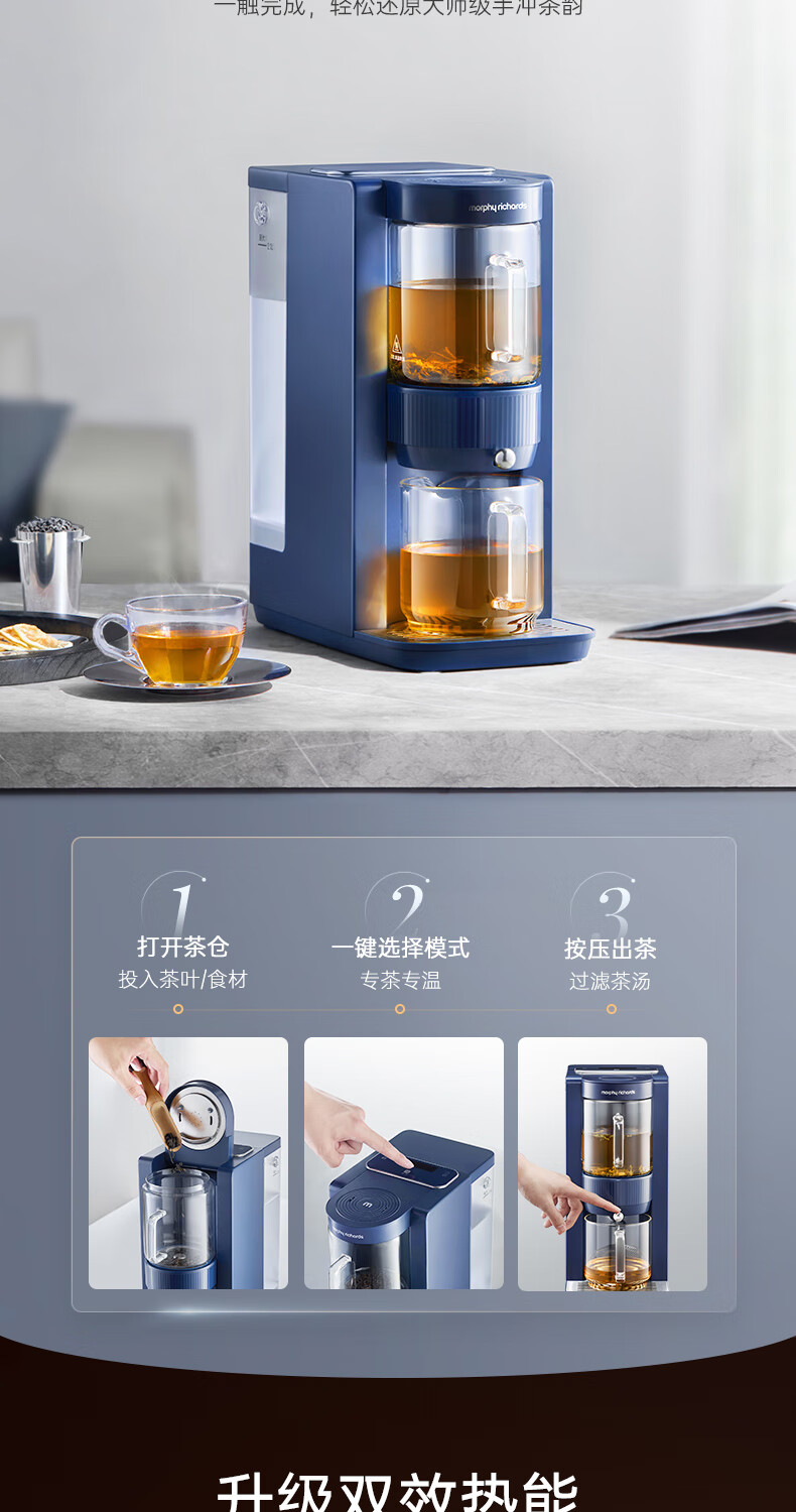 Morphy Richards摩飞即热泡煮茶饮机 MR6097 白色/蓝色 2L