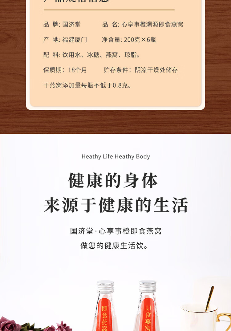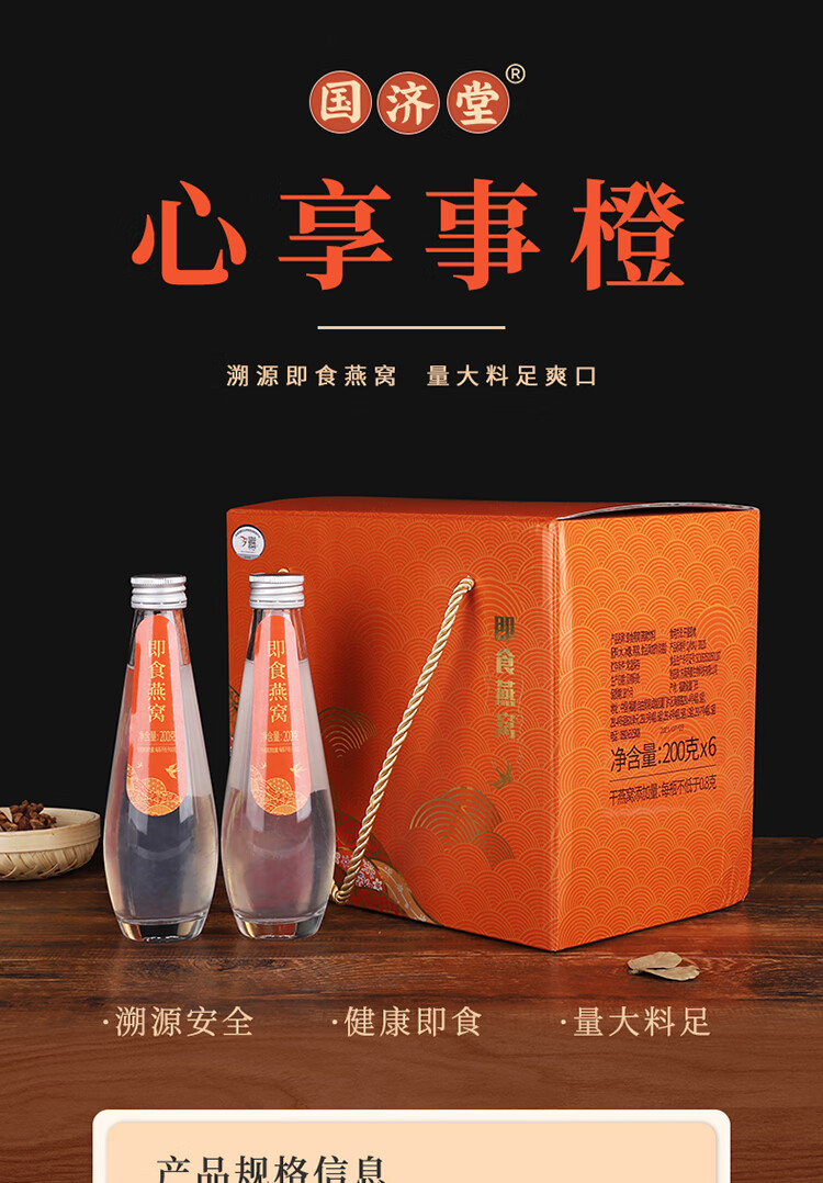 国济堂 即食燕窝 心享事橙即食燕窝礼盒 200g*6