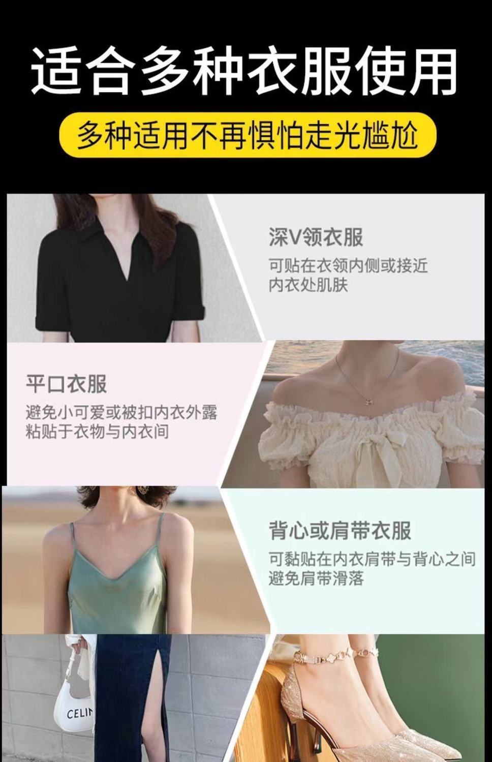 72片优惠装防走光贴夏季领口衣服隐形胸口衬衣吊带用裙子衣条肩带女防滑神器七夕情人节