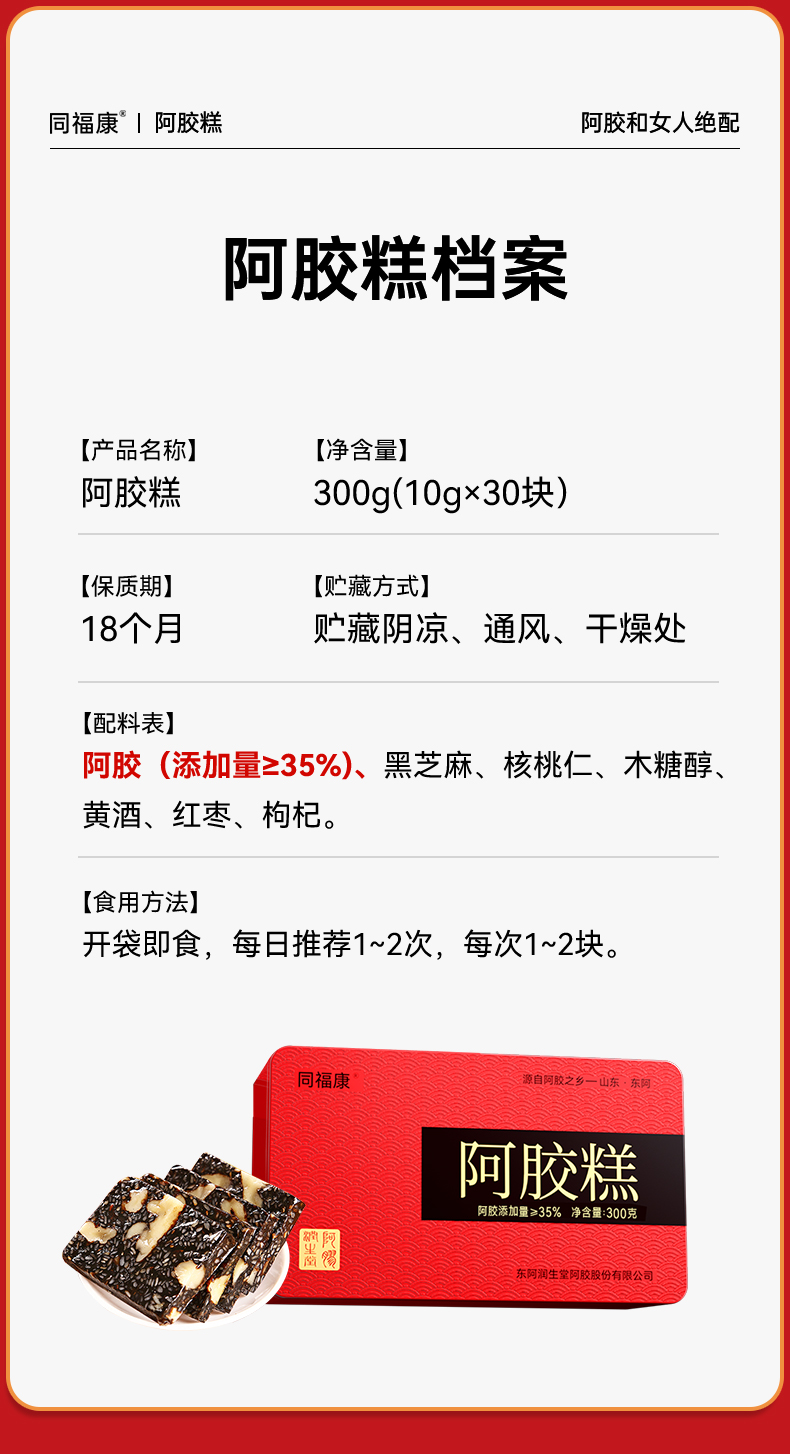 同福康纯驴皮阿胶糕 35%纯驴皮阿胶糕