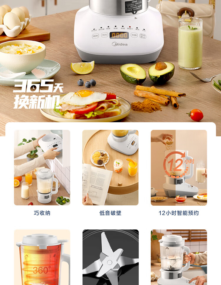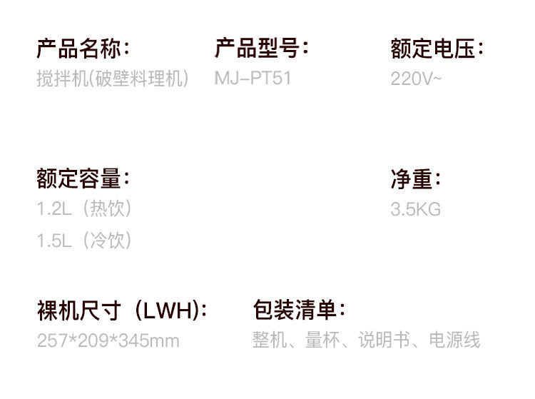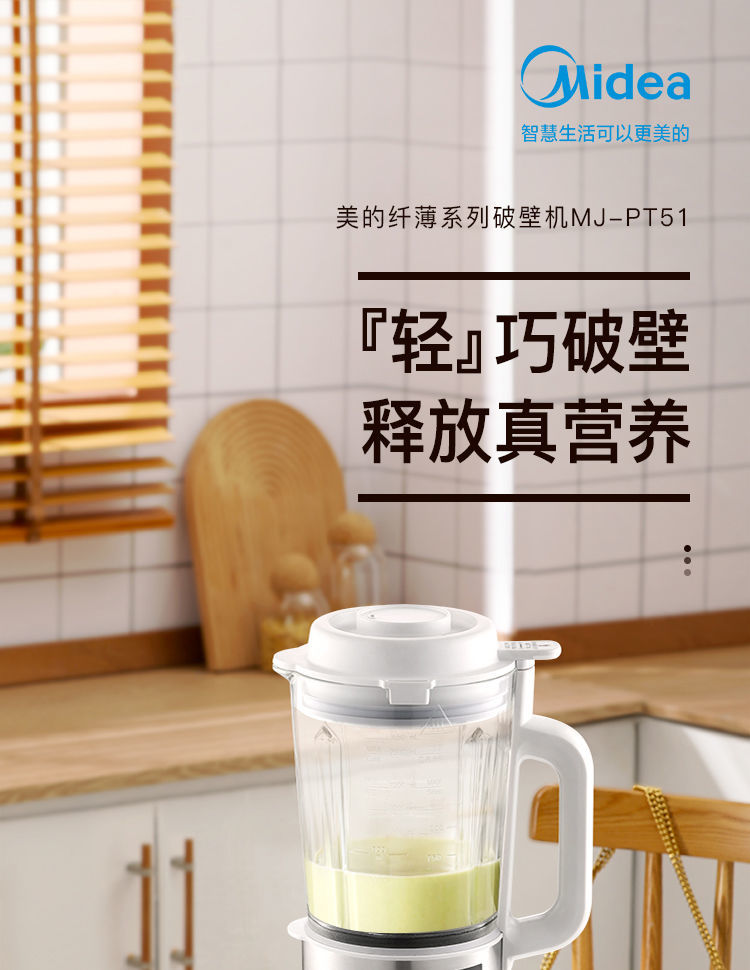 美的 破壁机 1.5L多功能破壁料理机 PT51