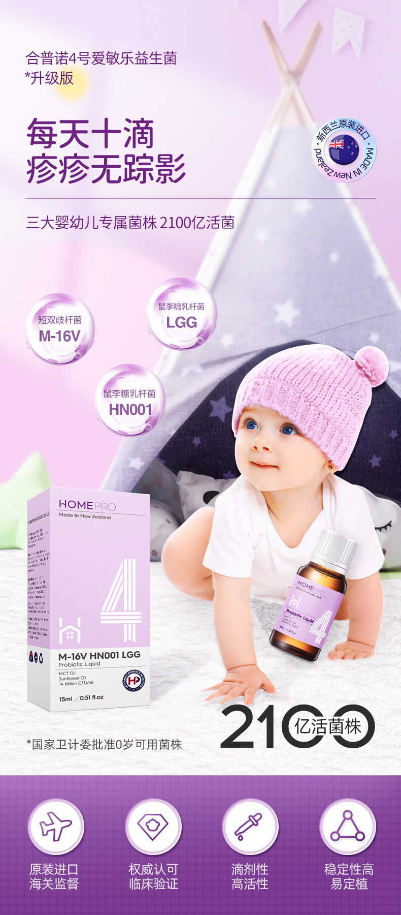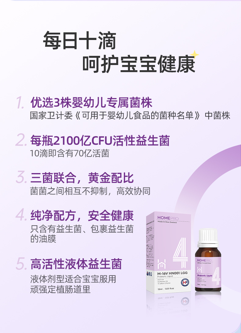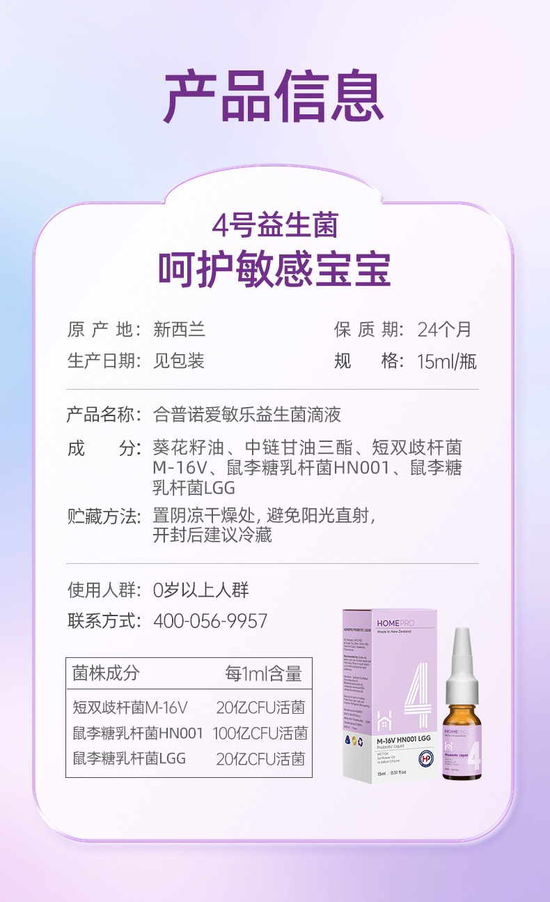 HomePro合普诺4号爱敏乐益生菌滴液饮品15ml/瓶