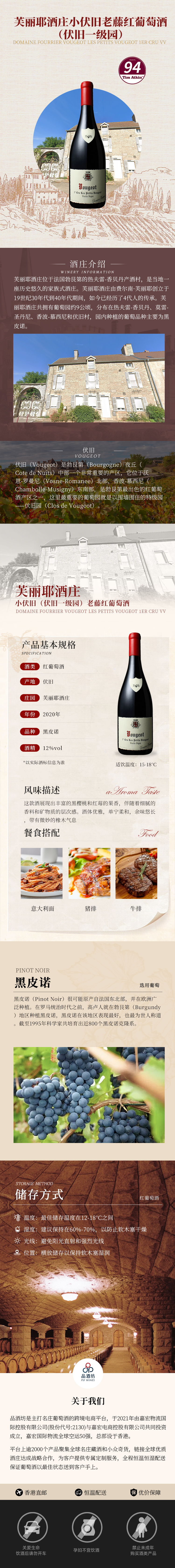 2020 Domaine Fourrier Vougeot Les Petits Vougeot 1er Cru VV 芙丽耶酒庄小伏旧(伏旧一级园)老藤红葡萄酒