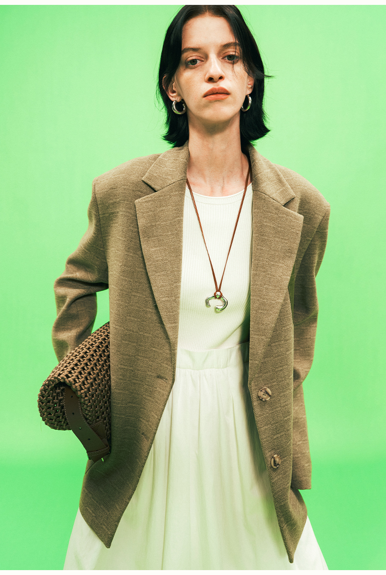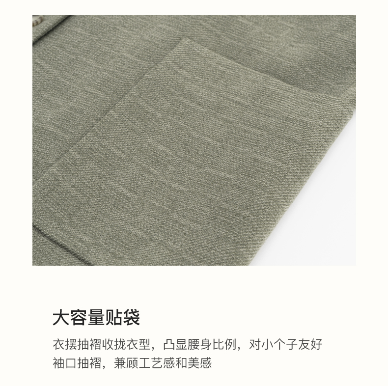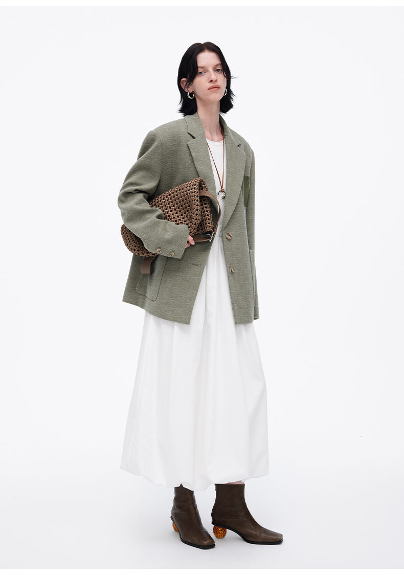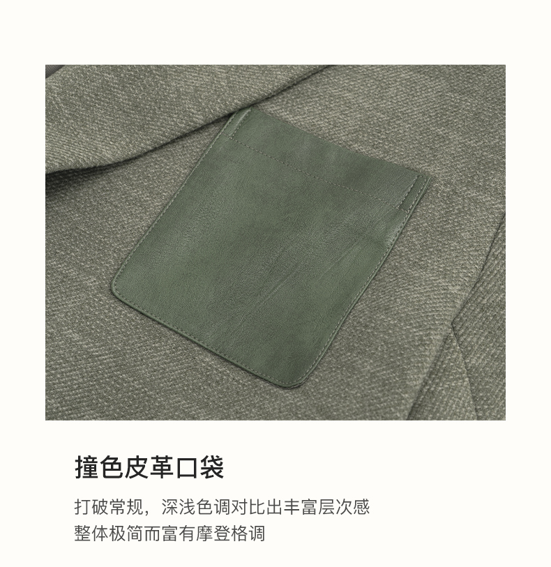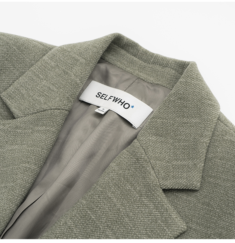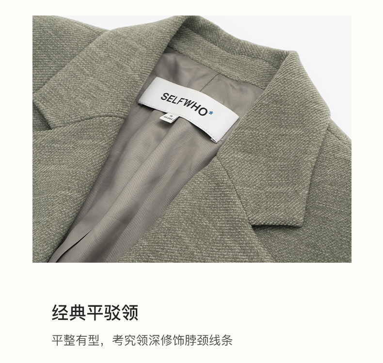SELFWHO绿色西装外套女2025春新款撞色贴袋宽松休闲通勤西服上衣
