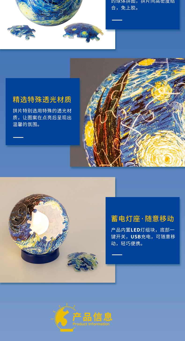 3寸61片 灯光球拼图 塑料拼图 J1112 梵谷-星夜