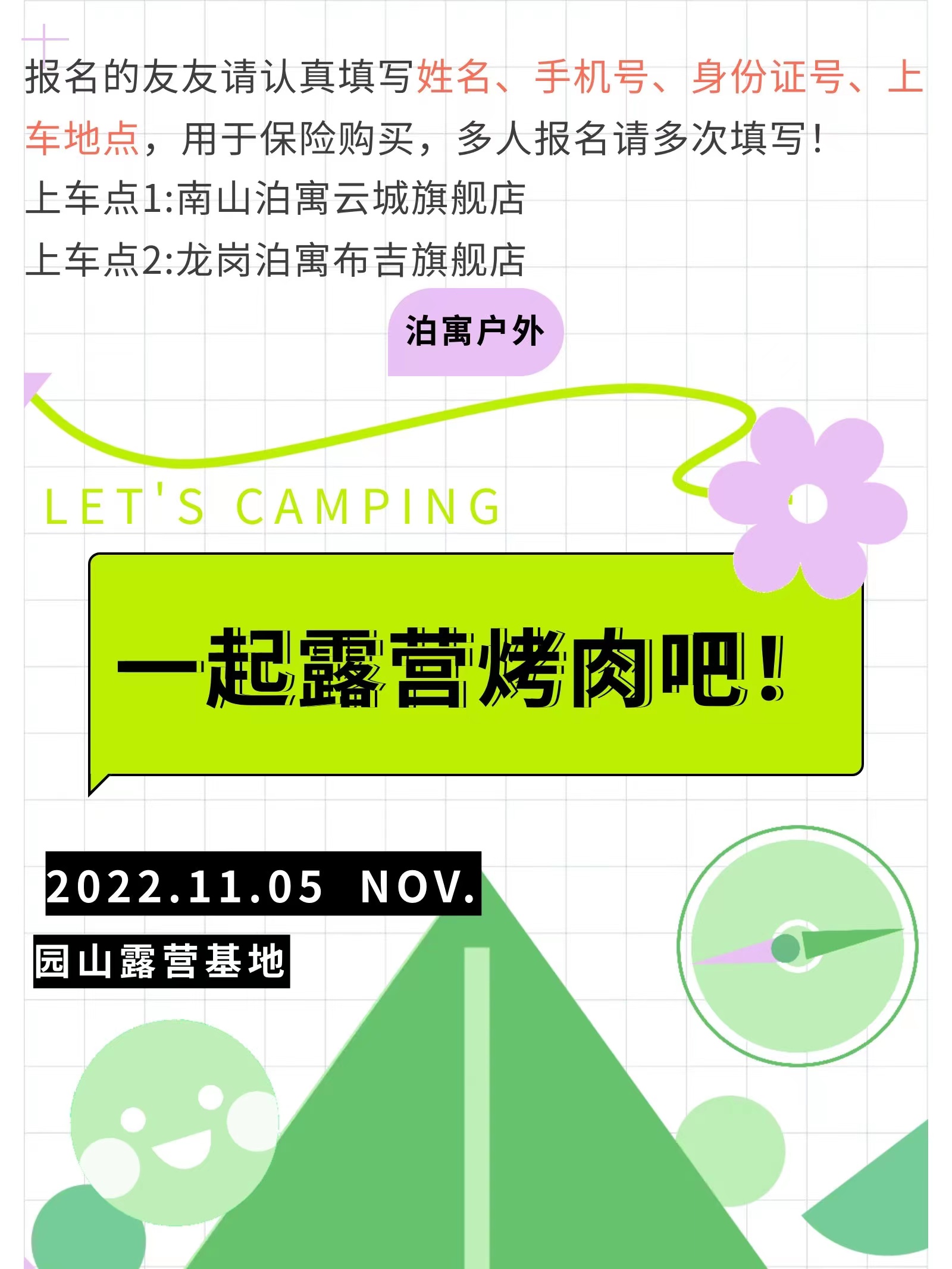 【泊寓户外】11月26日露营不过夜社交烤肉局&草地音乐会