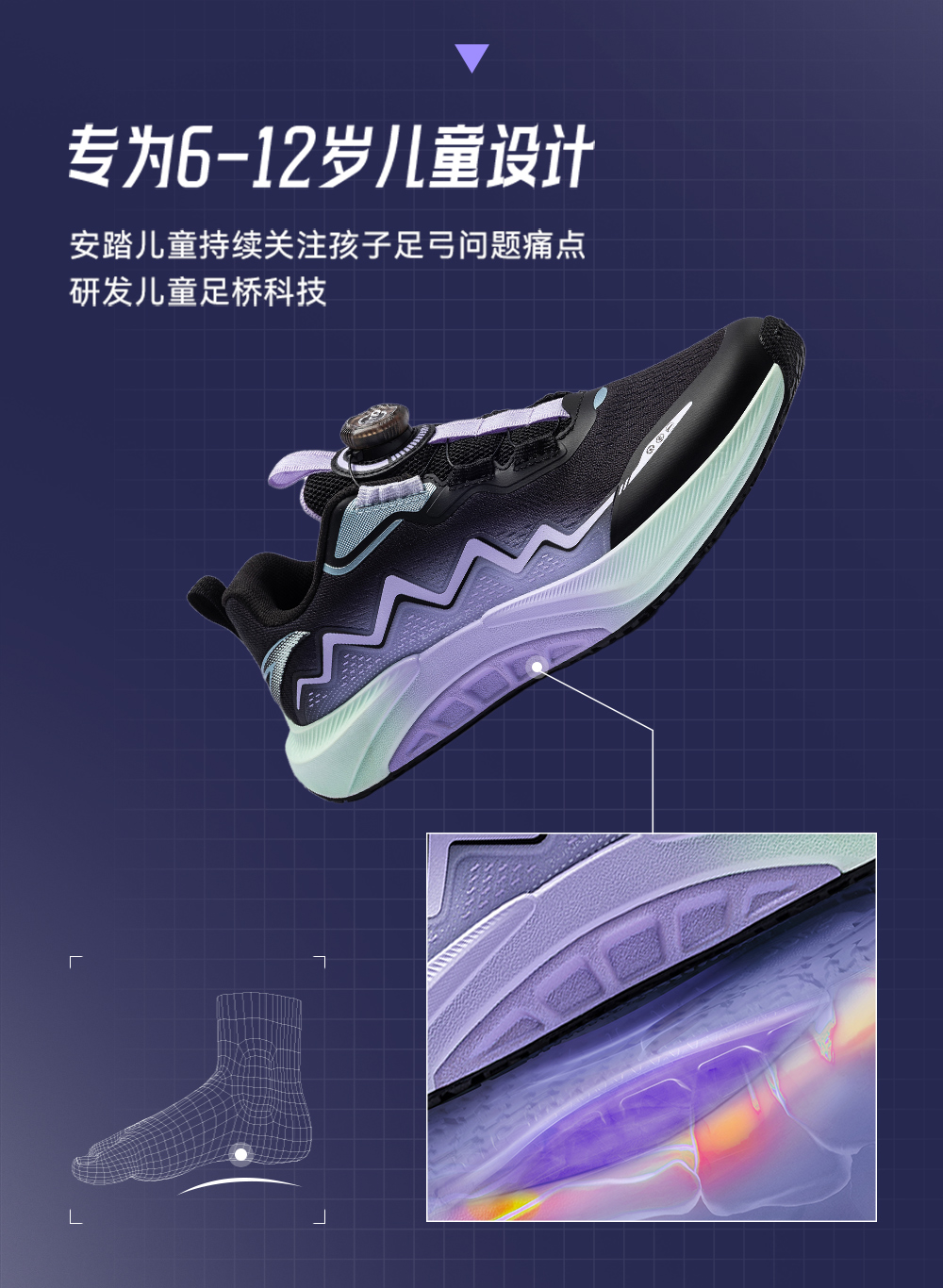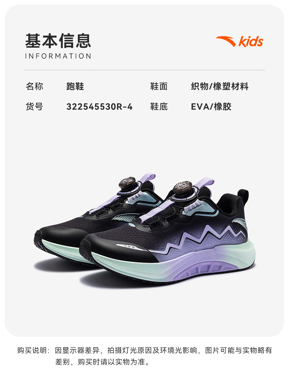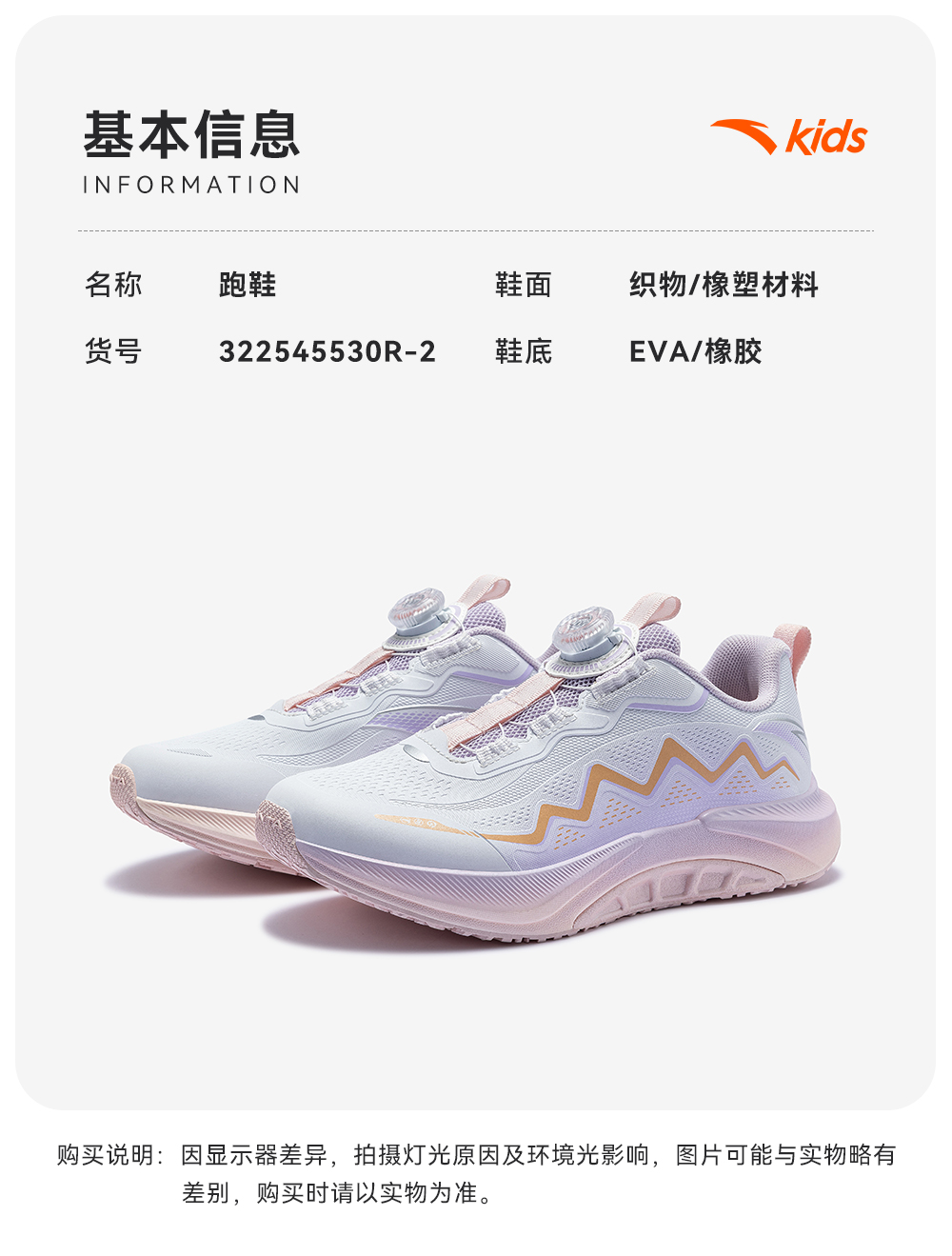 安踏女童鞋足弓儿童女跑鞋2025秋冬新款日常跑步鞋学生运动鞋322545530R
