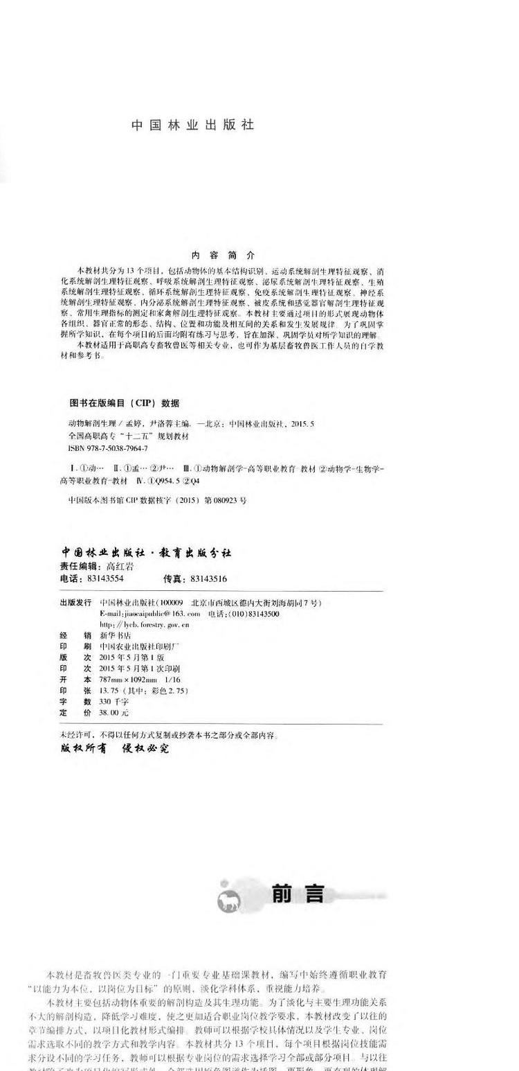 动物解剖生理7964 教材 中国林业出版社正版畅销书籍