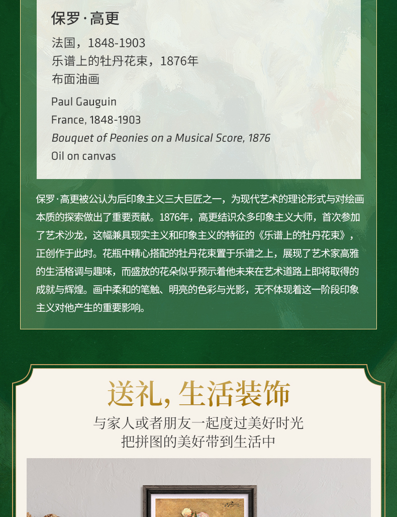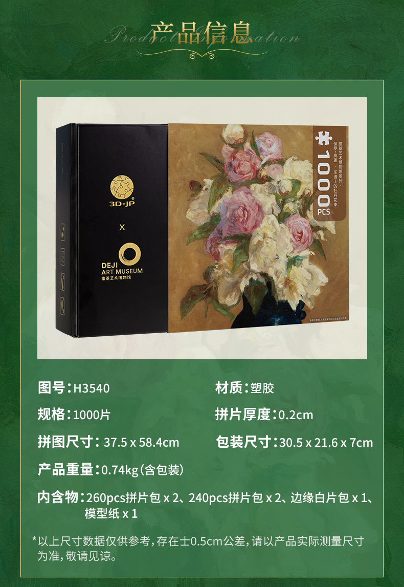 1000片 平面塑料拼图 H3540 德基艺术博物馆系列-保罗·高更-乐谱上的牡丹花束