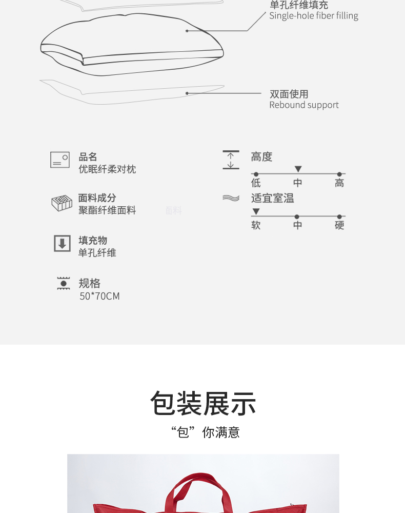 梦洁优眠纤柔对枕(超声波无纺布袋包装)1对—rxs