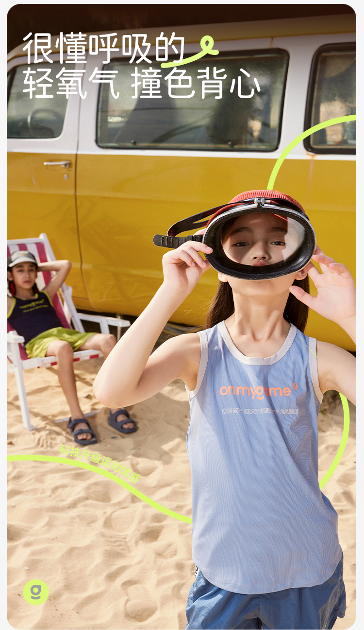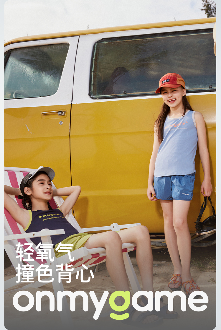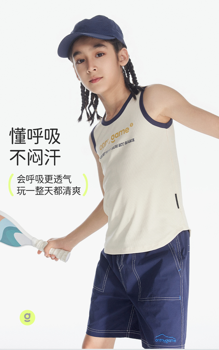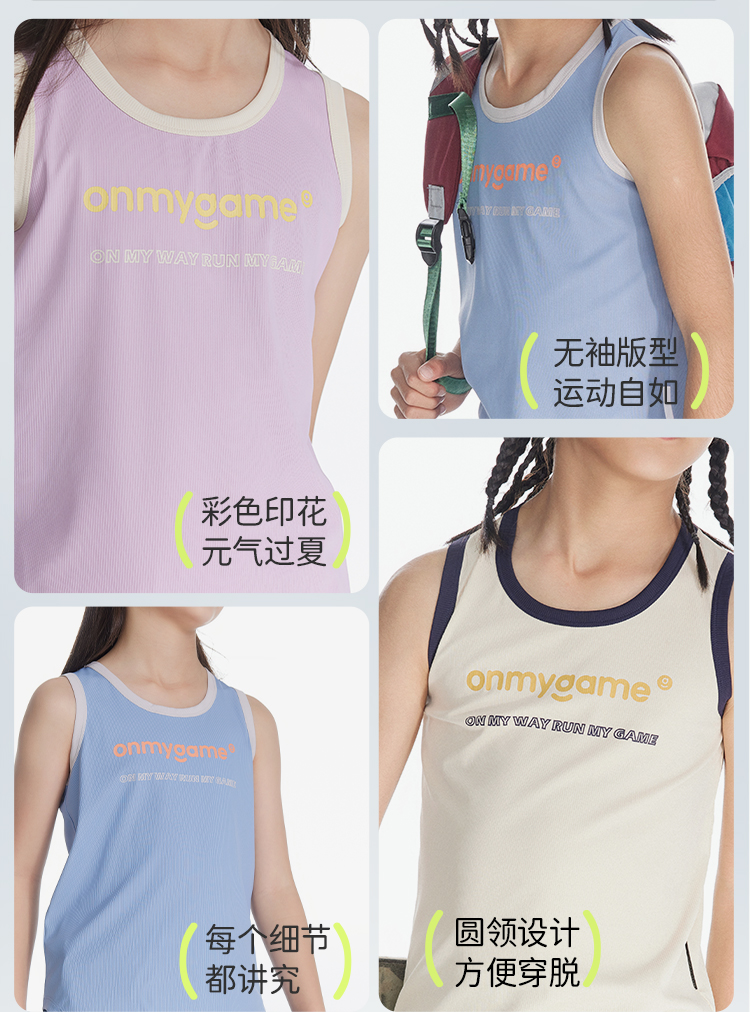 onmygame儿童运动背心男女童凉感透气夏装撞色无袖T恤2024新款