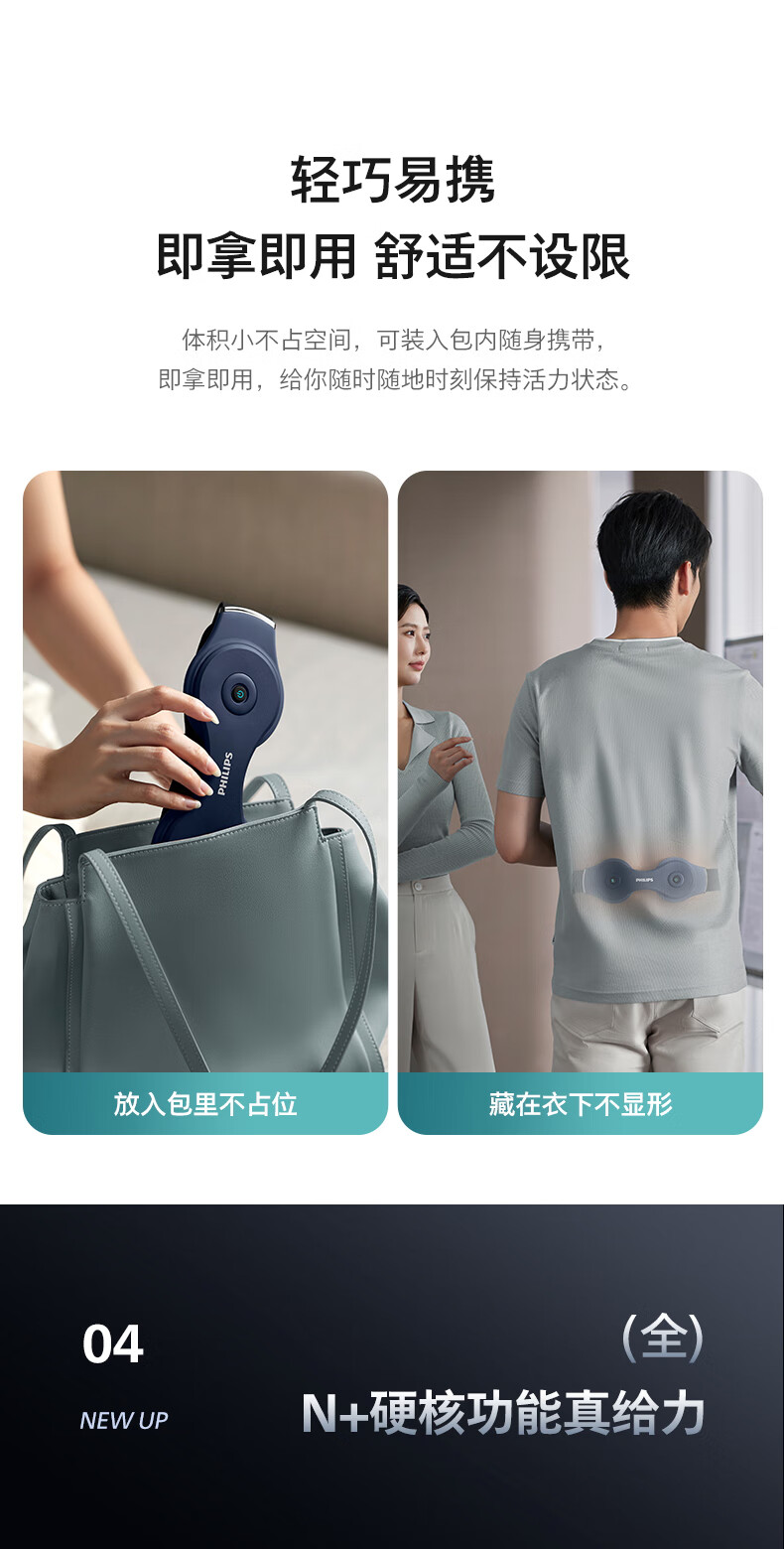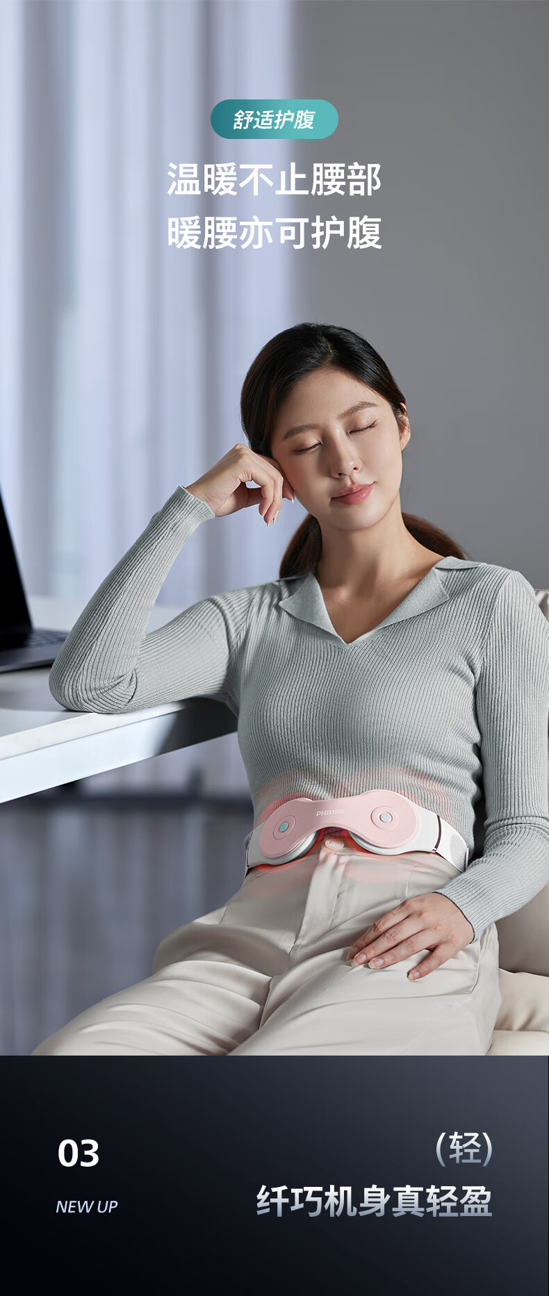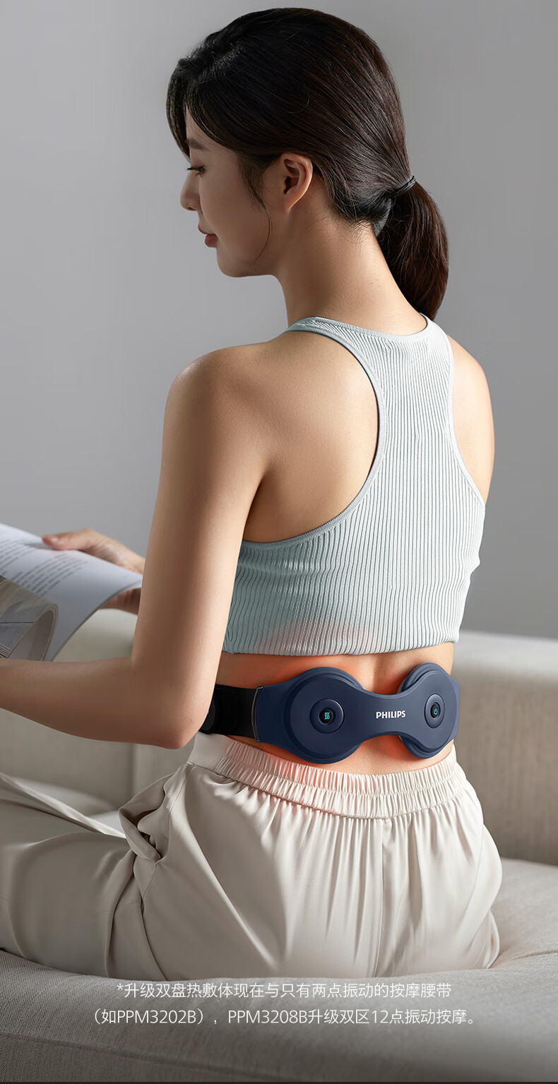飞利浦(PHILIPS)腰部按摩器 腰椎热敷仪多档振动腰带热敷舒缓腰部按摩仪暖宫腰带PPM3208B粉 年会礼品生日礼物