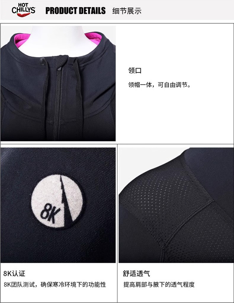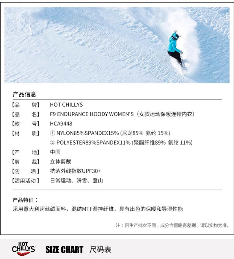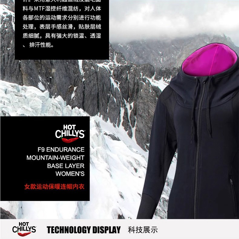 HOTCHILLYS热椒速干连帽内衣女户外运动保暖排汗拉链衫HA9448