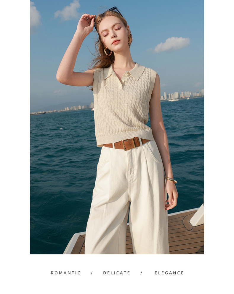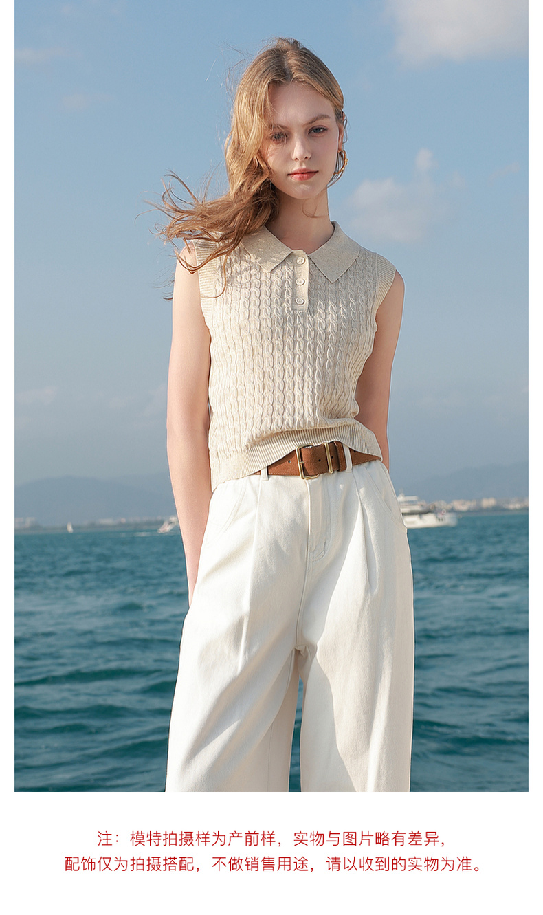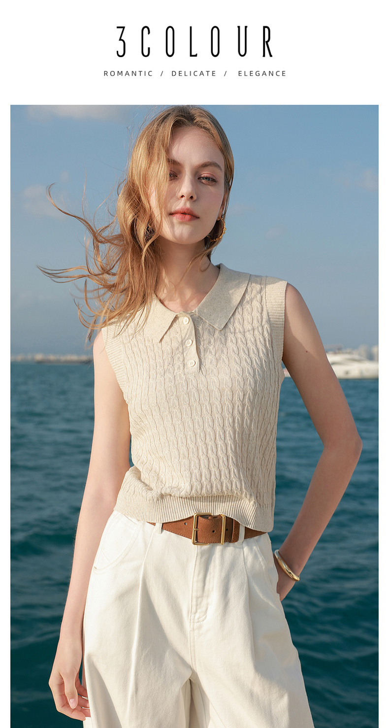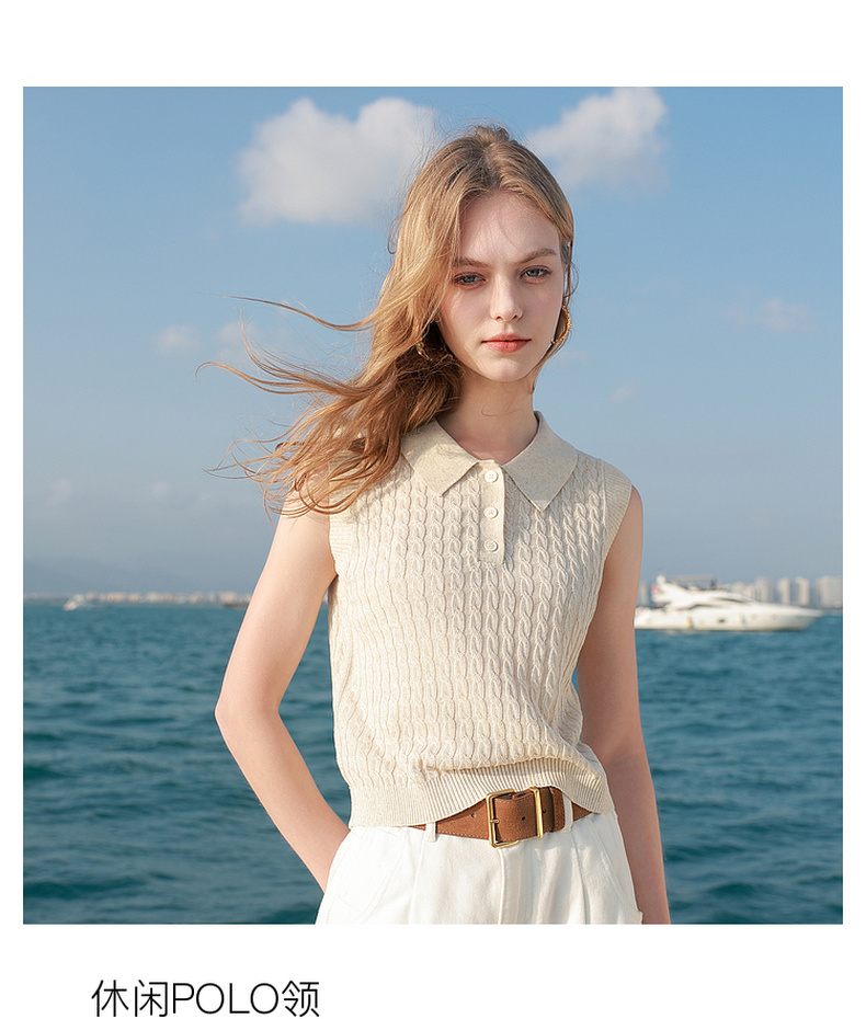 三彩2026夏季新款绞花针织衫莱赛尔背心毛衫无袖短款文艺M