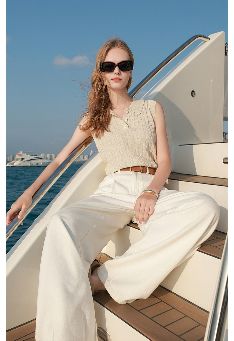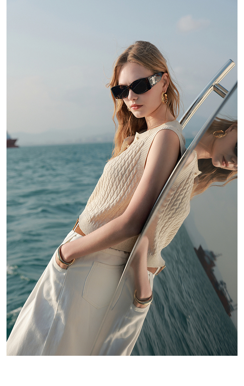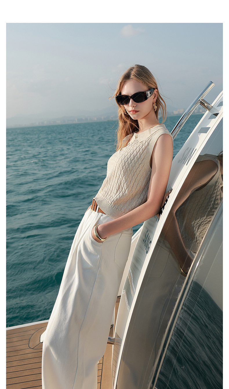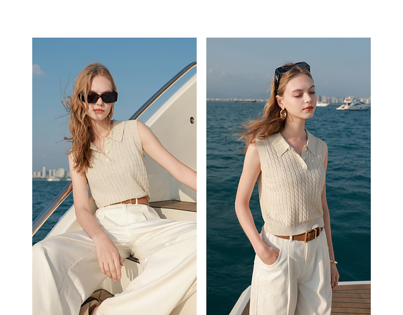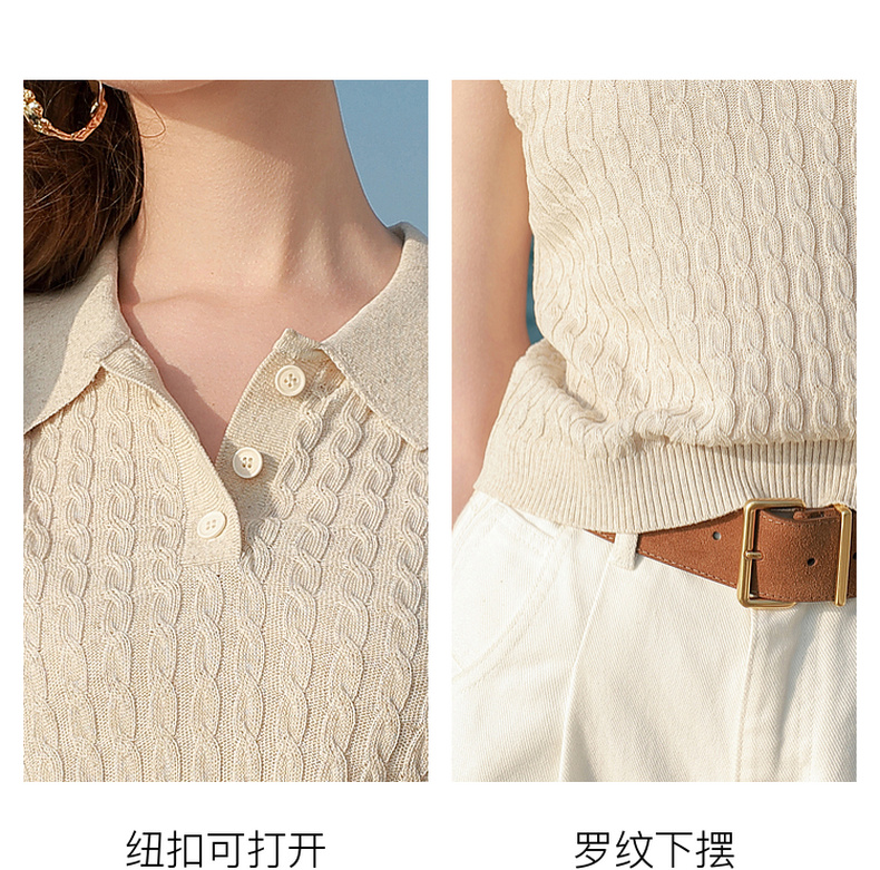 三彩2026夏季新款绞花针织衫莱赛尔背心毛衫无袖短款文艺M