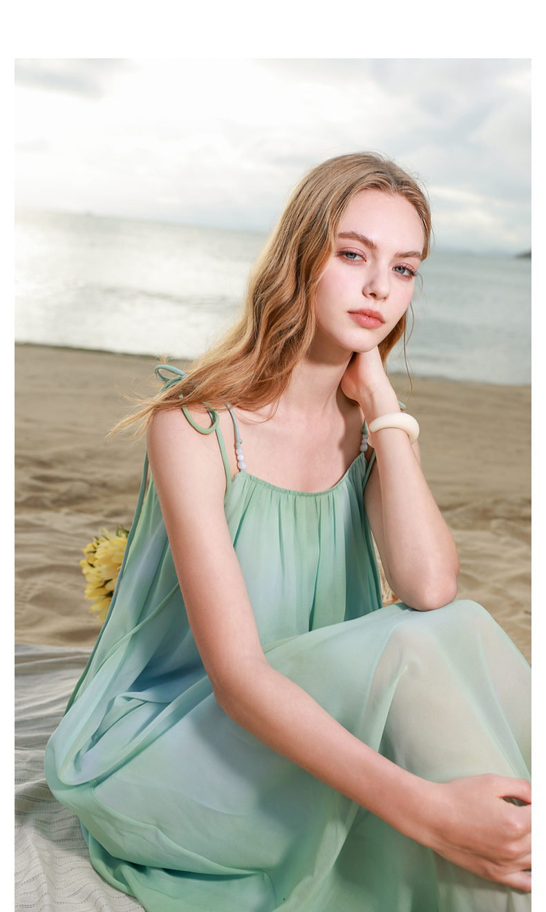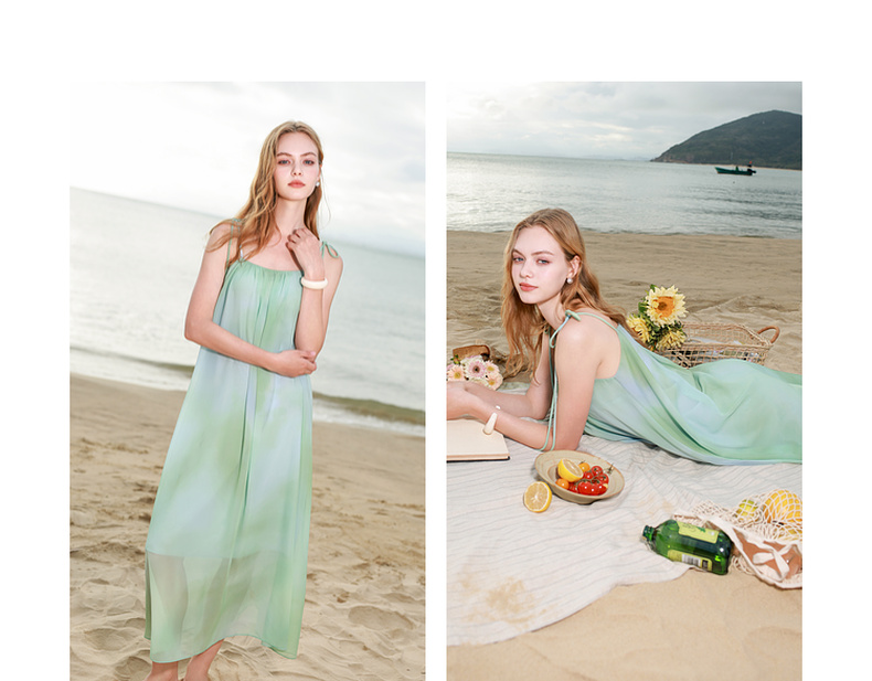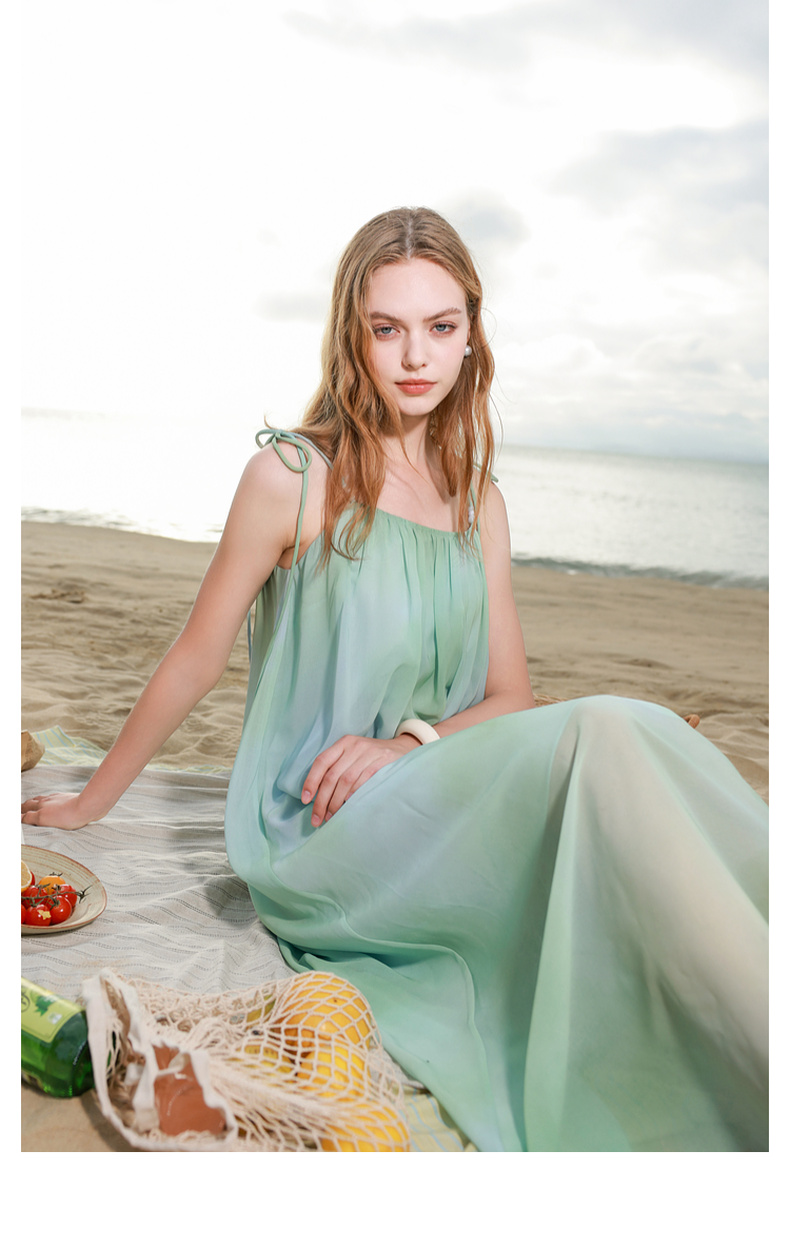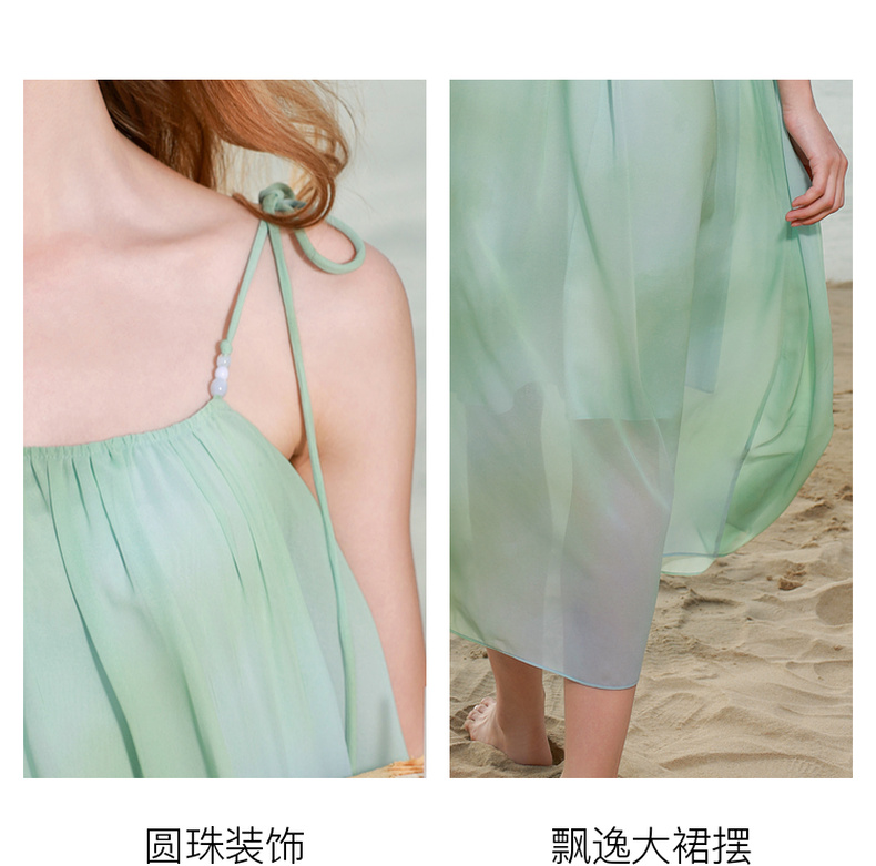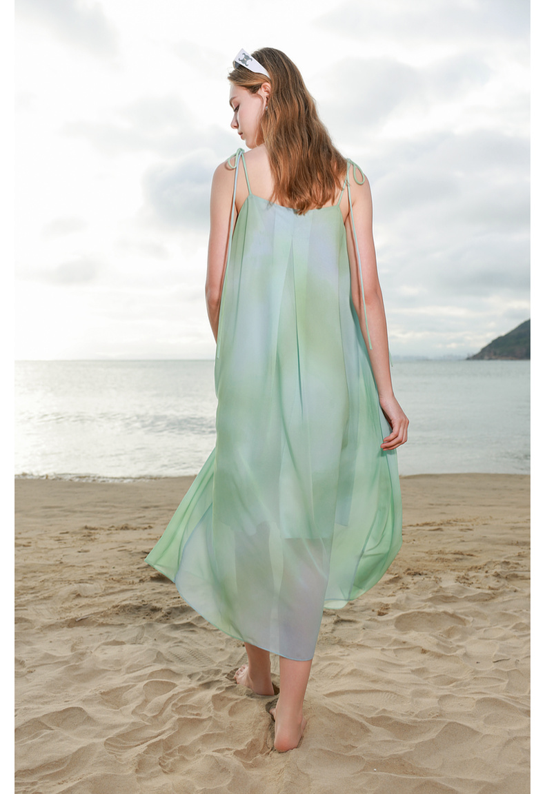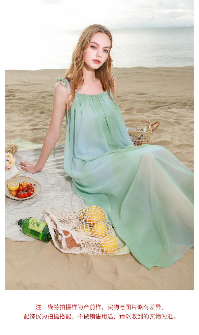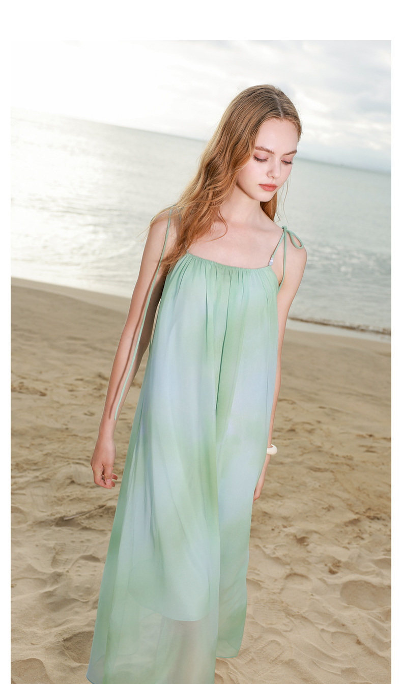 三彩2025夏季新款晕染吊带裙无袖连衣裙宽松A字裙长裙度假M