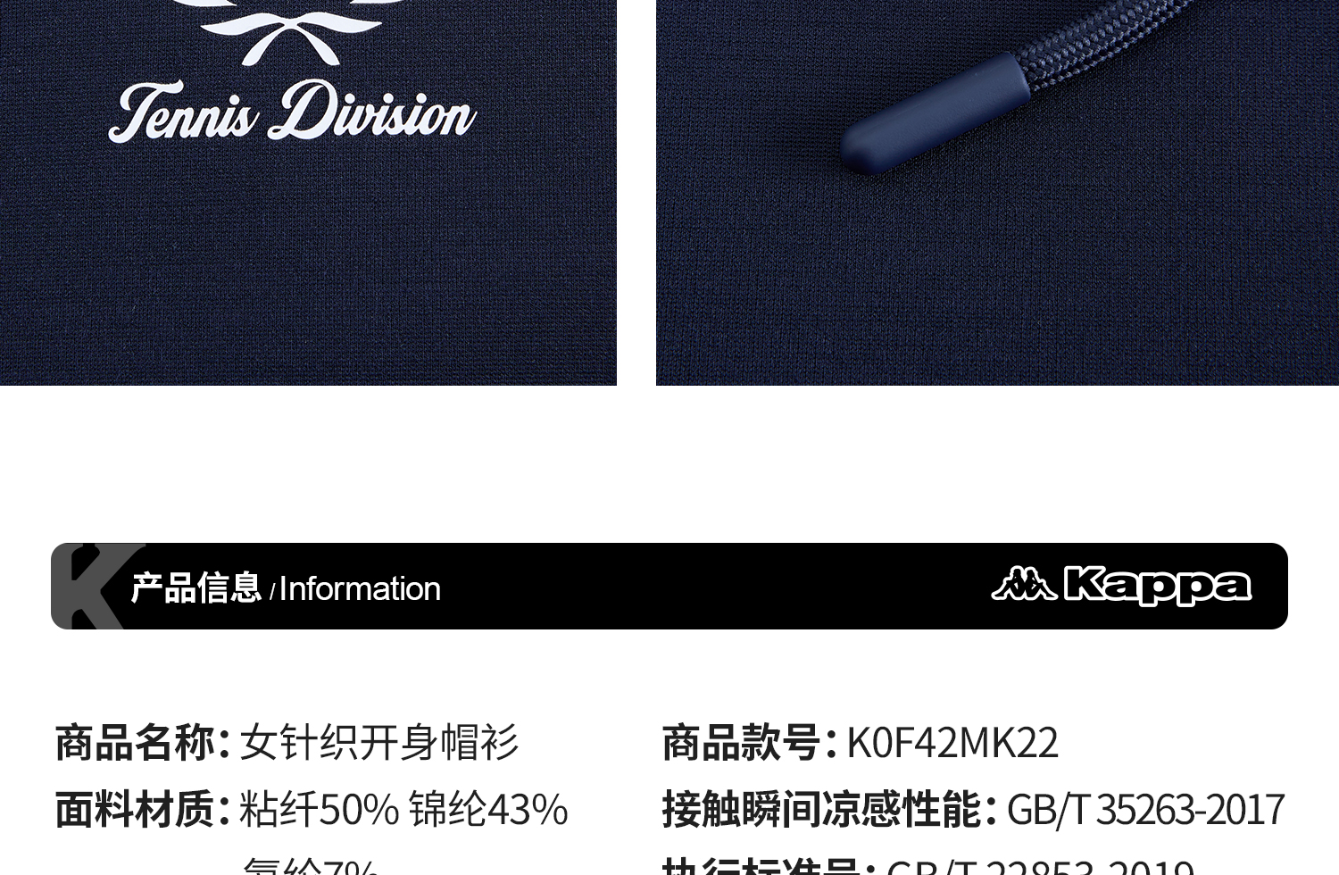 Kappa卡帕背靠背女士2025新款凉感运动外套开衫卫衣针织连帽上衣K0F42MK22