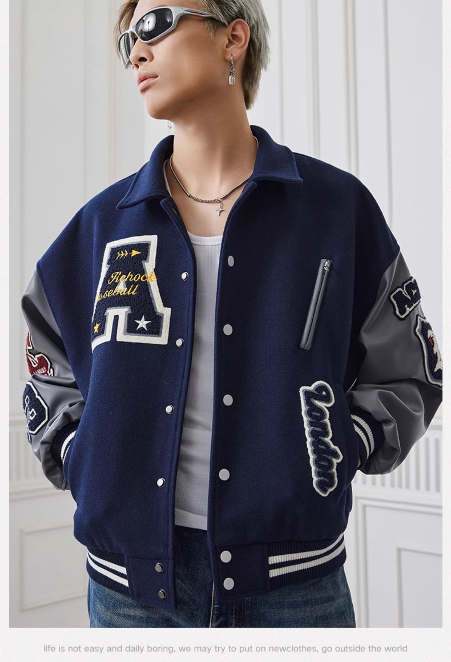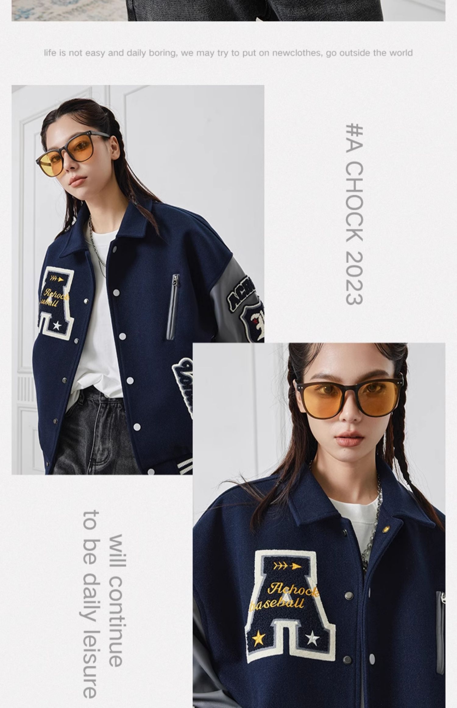 【Achock官方店】美式cleanfit立领重磅刺绣棒球服潮牌外套男夹克
