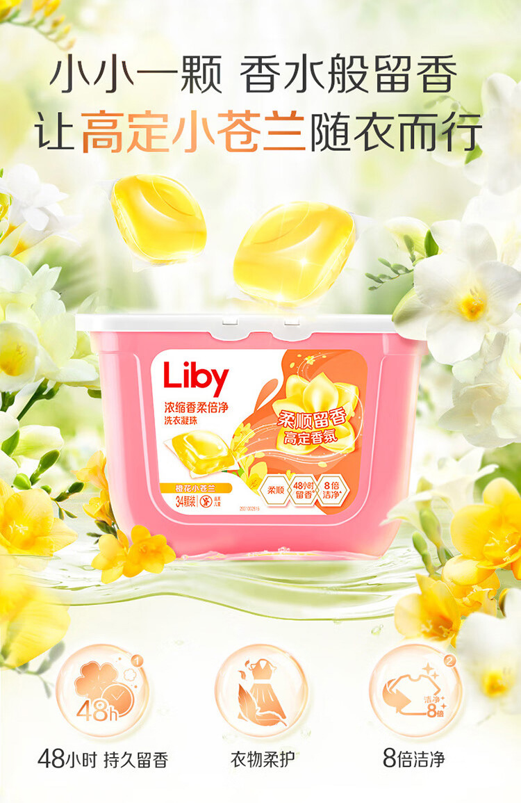 立白浓缩香柔倍净洗衣凝珠(薄盒)272g(小苍兰34颗)