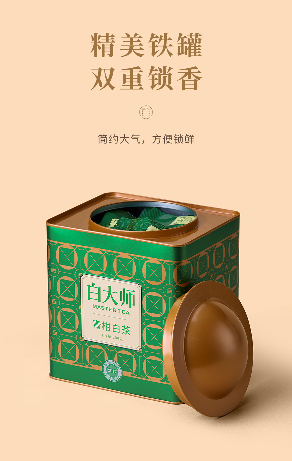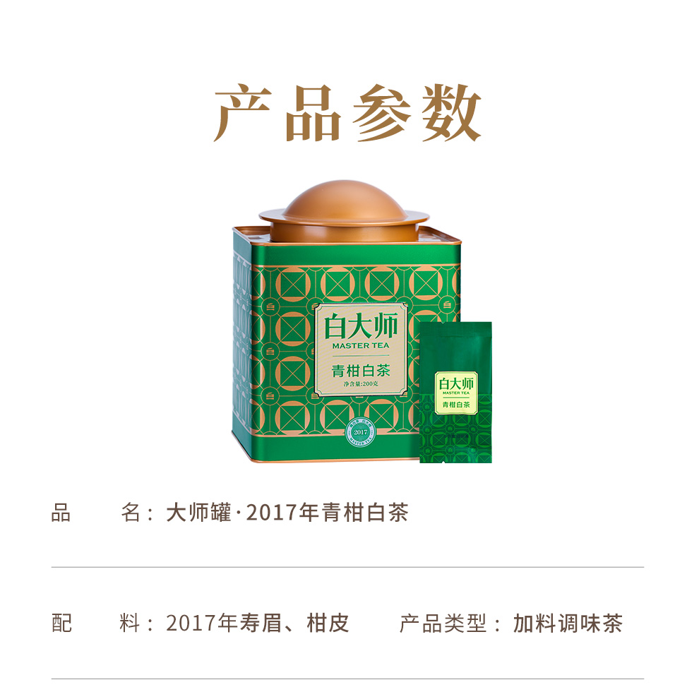白大师白茶茶叶礼盒2017年正宗原料青柑白茶罐装200g