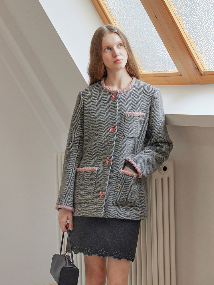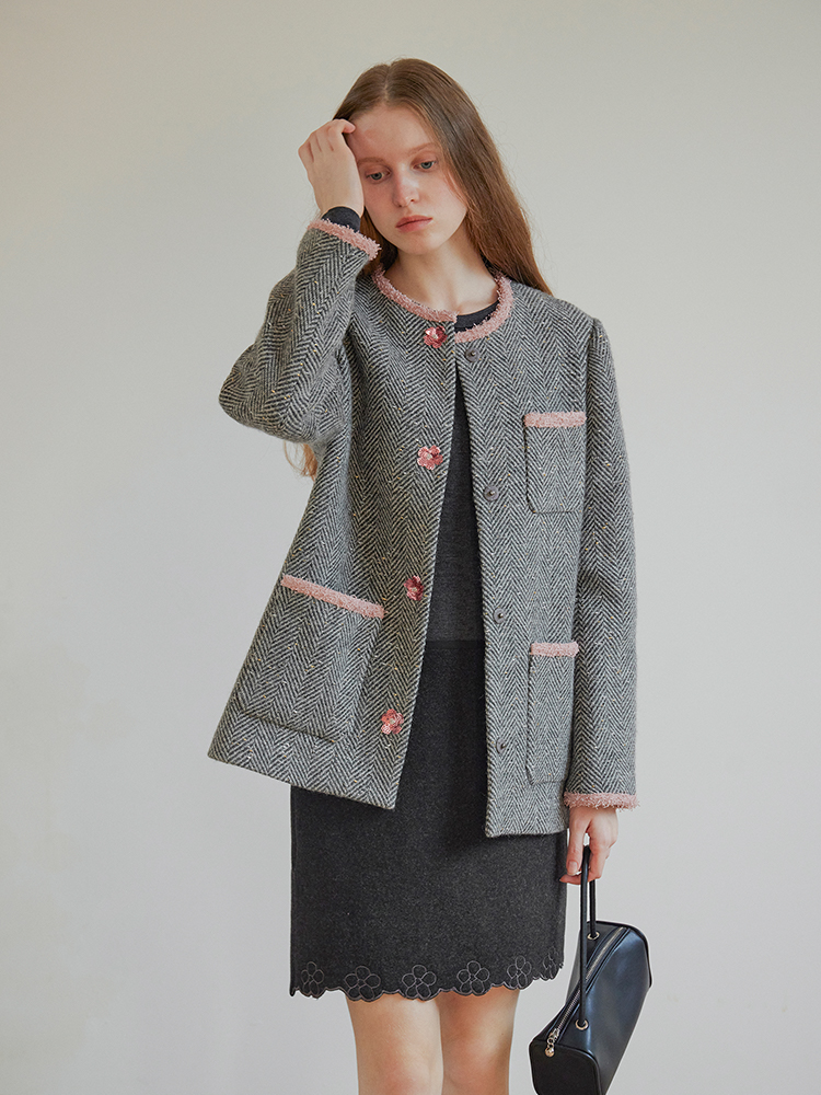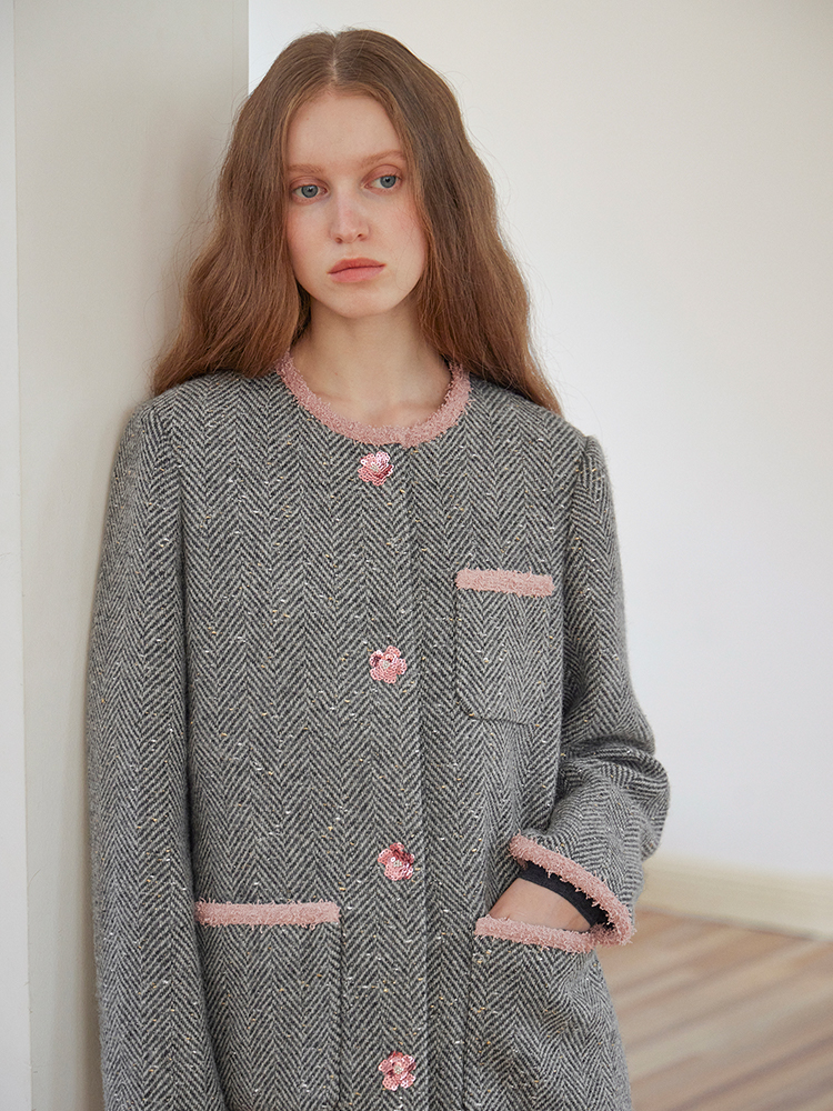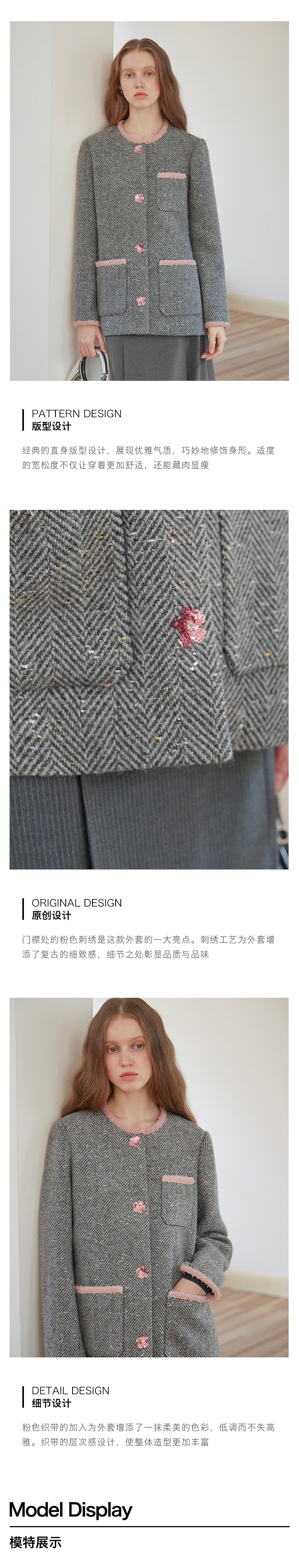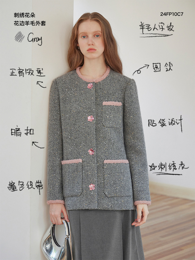 ForPoem 现货 24/FW原创设计刺绣花朵花边羊毛小香风中长款外套