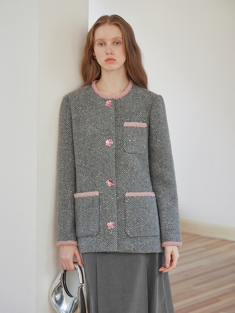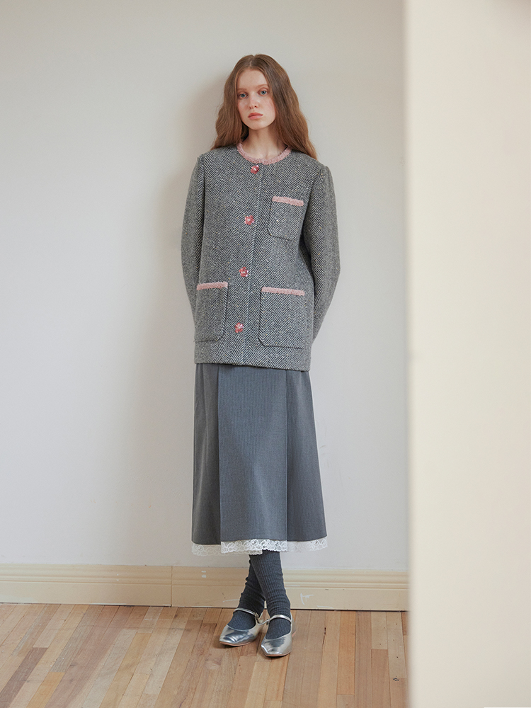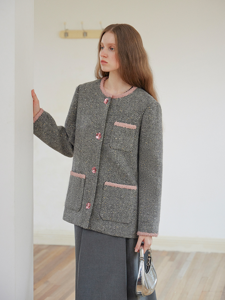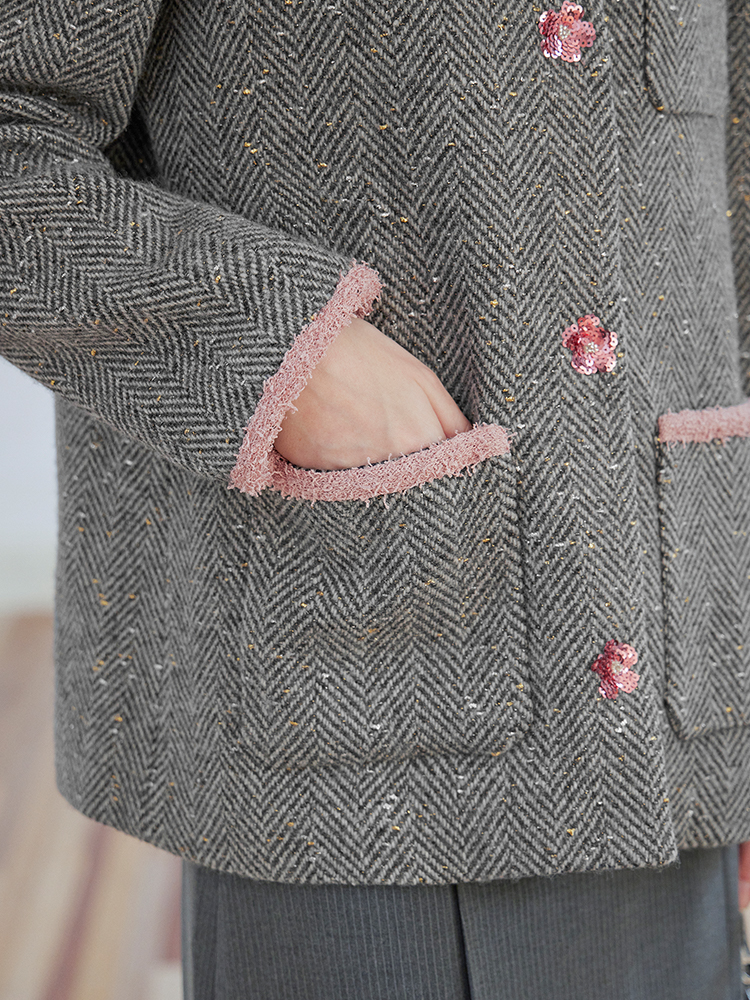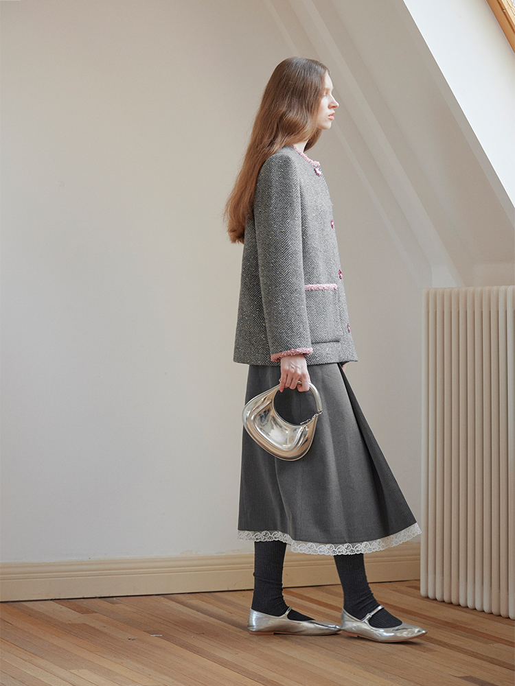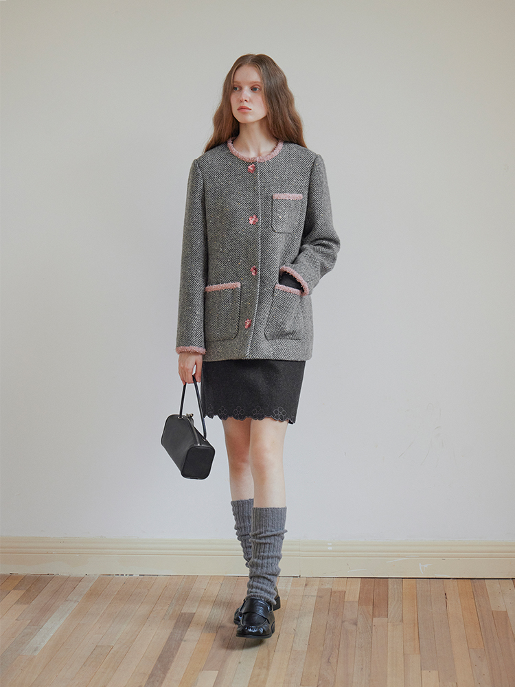 ForPoem 现货 24/FW原创设计刺绣花朵花边羊毛小香风中长款外套