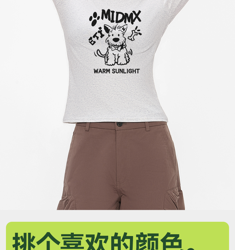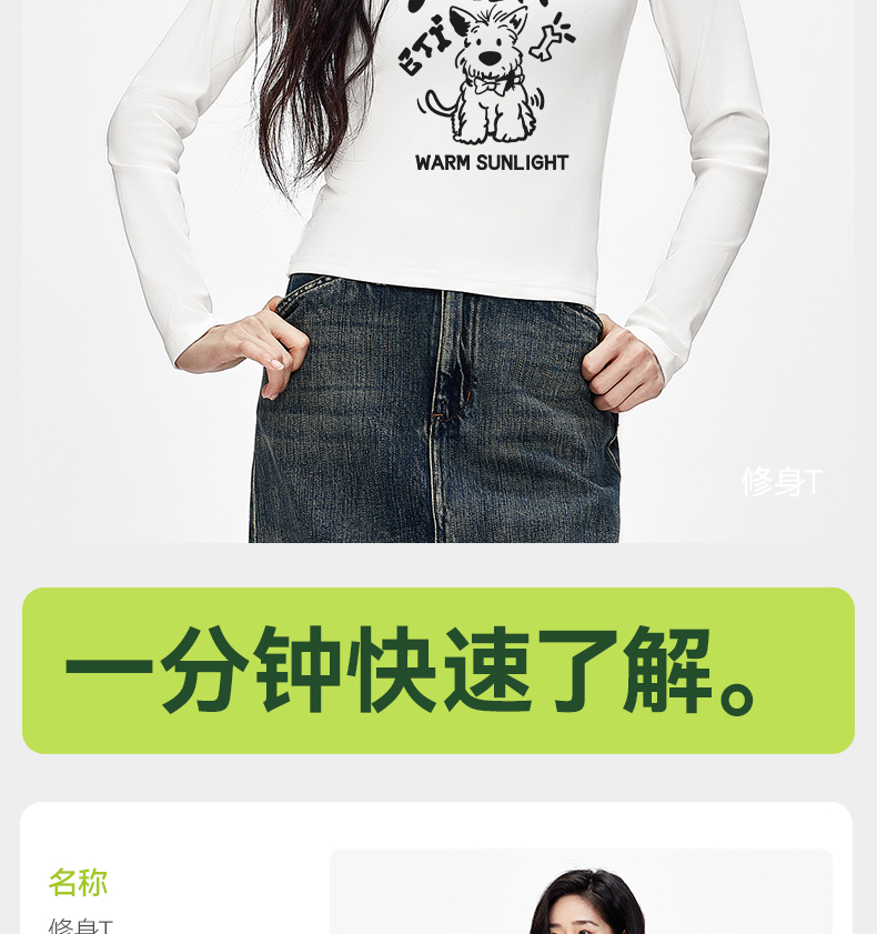 「棉的美学」秋冬圆领修身柔软长袖女高弹圆领T恤小狗印花软糯上衣