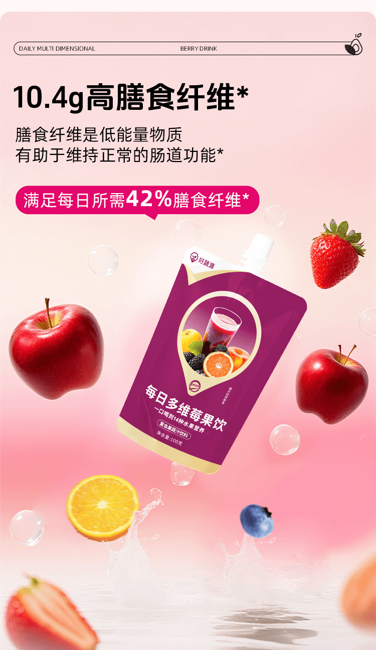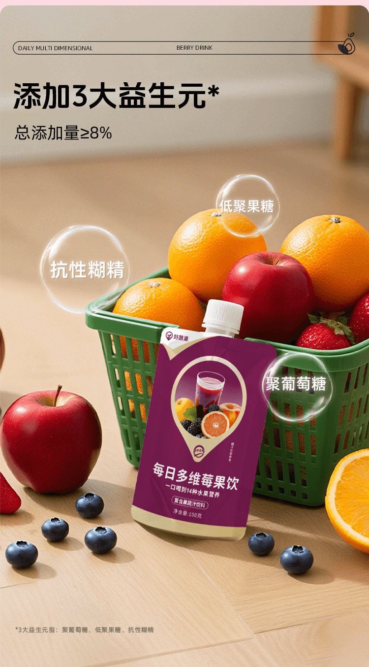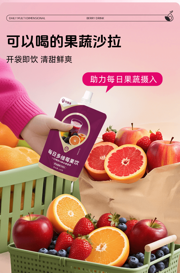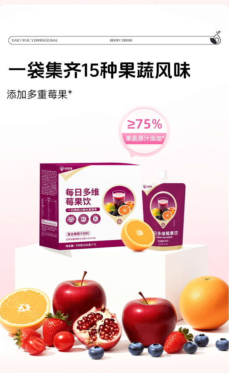 【开袋即饮】好蔬源 每日多维莓果饮 100g*7袋/盒 1袋集齐15种果蔬风味