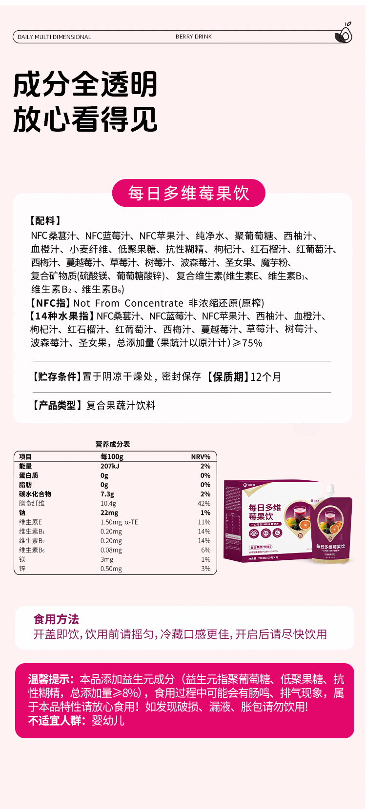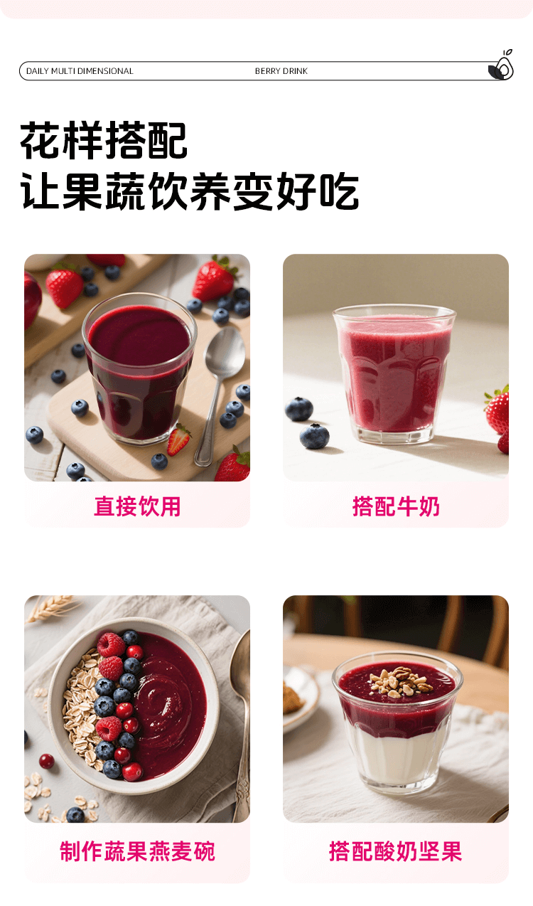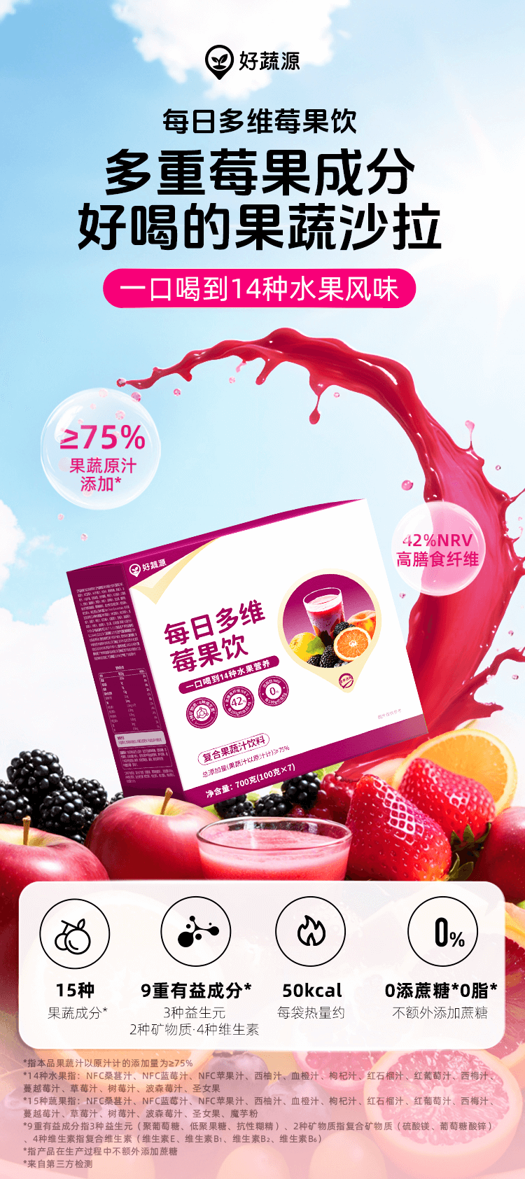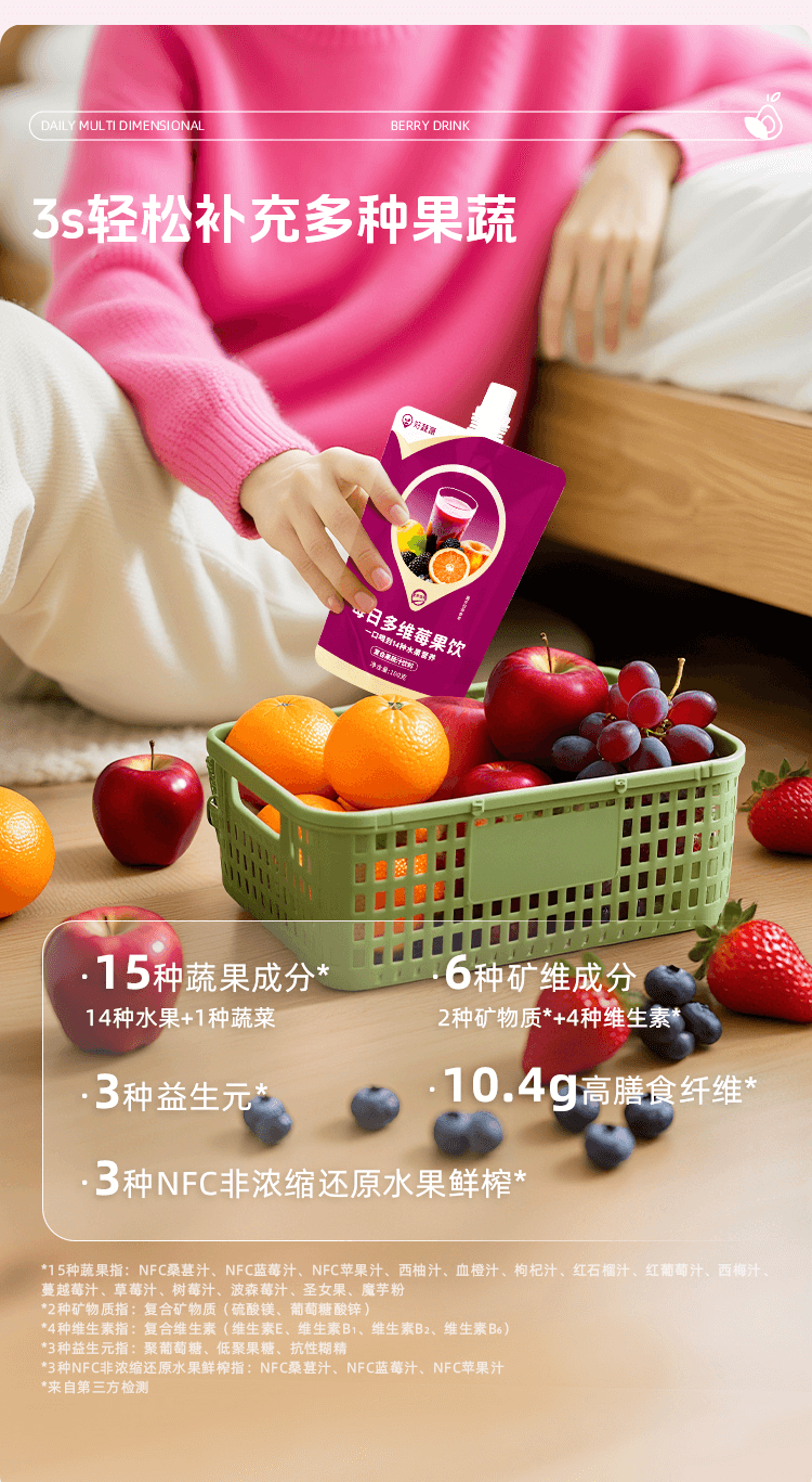 【开袋即饮】好蔬源 每日多维莓果饮 100g*7袋/盒 1袋集齐15种果蔬风味