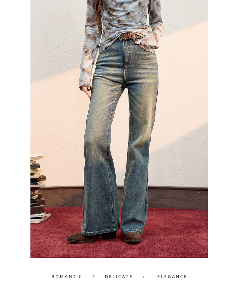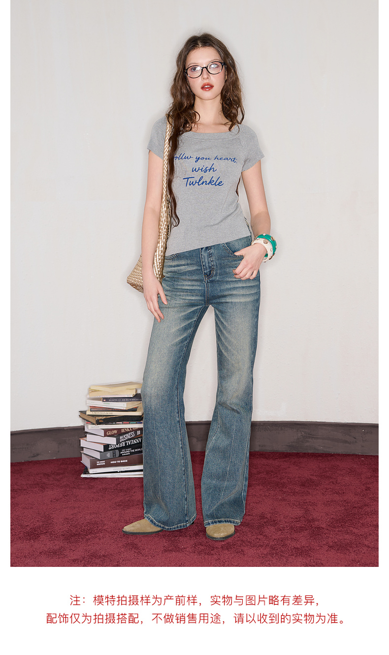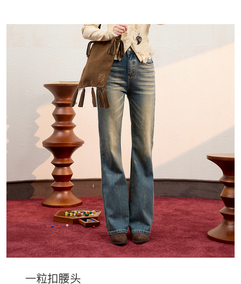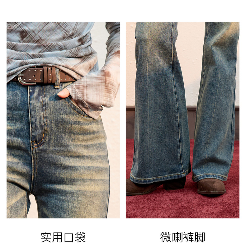 三彩独醒2025秋季新款微喇牛仔裤复古水洗喇叭裤休闲长裤F