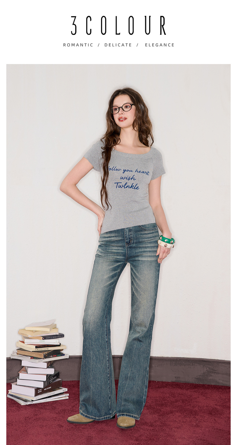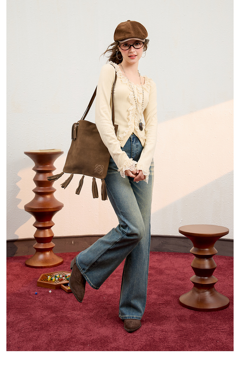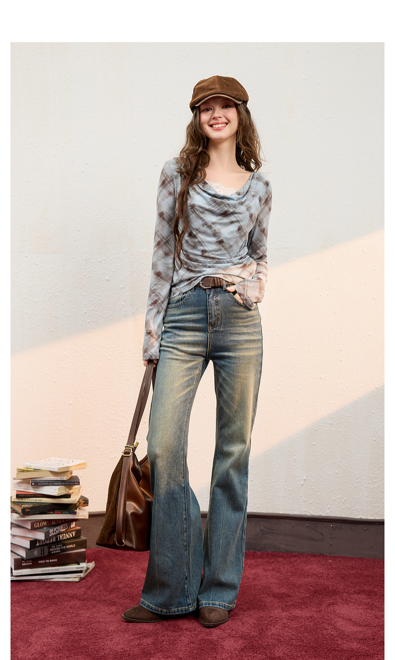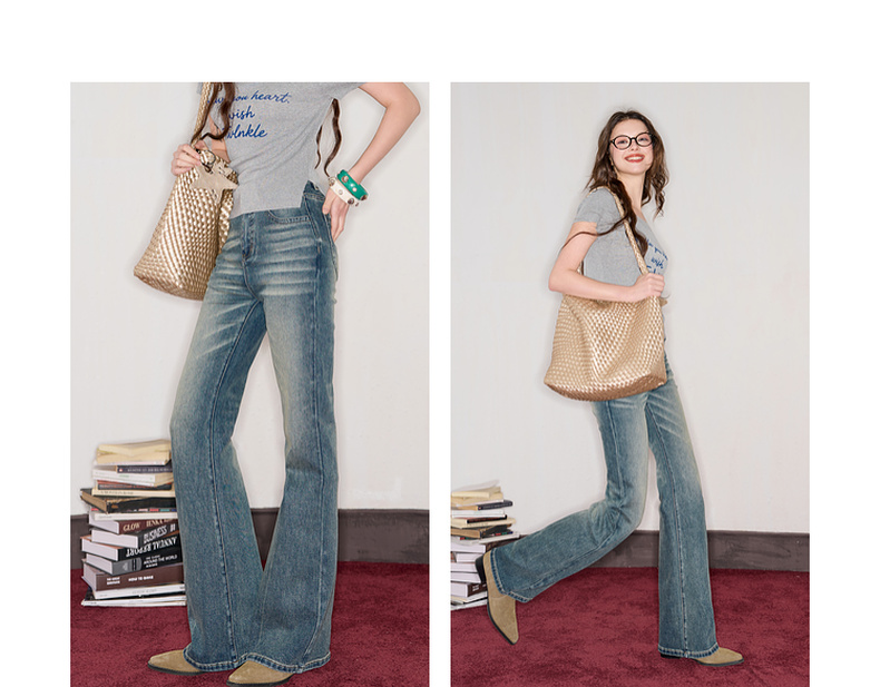 三彩独醒2025秋季新款微喇牛仔裤复古水洗喇叭裤休闲长裤F