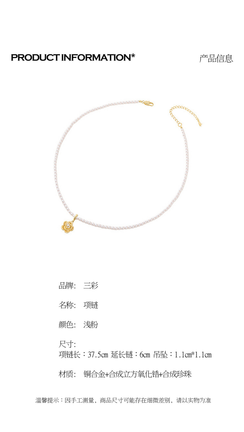 三彩2026新款法式温柔山茶花吊坠珍珠项链曼塔玫瑰色优雅通勤约会