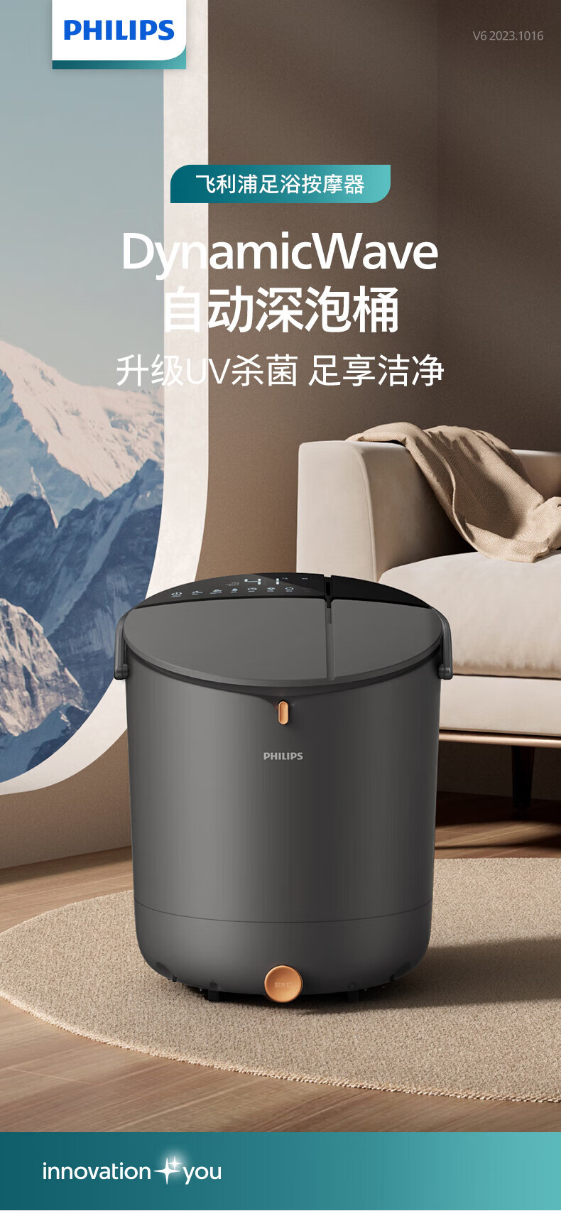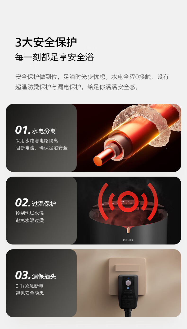 飞利浦(PHILIPS)泡脚桶 UV杀菌泡脚盆加热自动按摩深桶足浴盆多模式智能洗脚盆 年会礼品生日礼物送父母长辈 PPM5302F