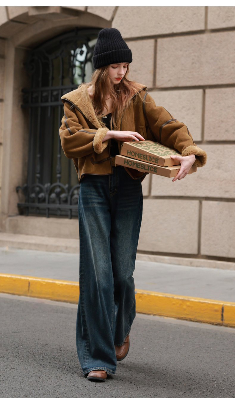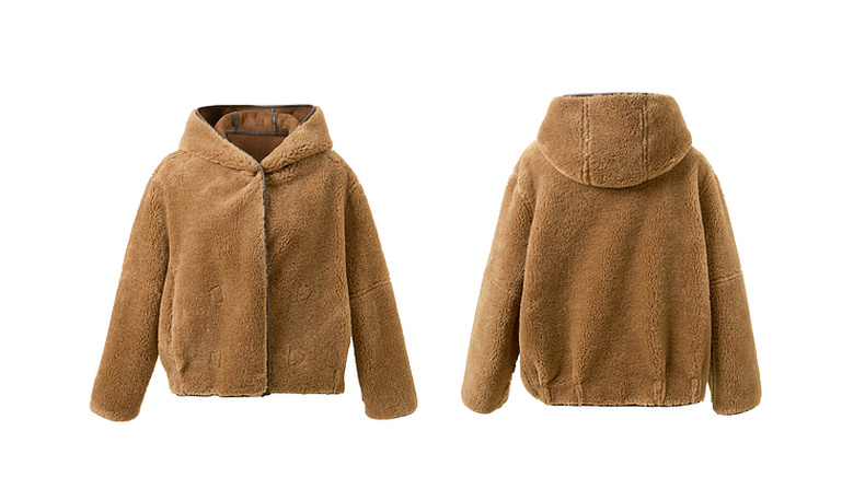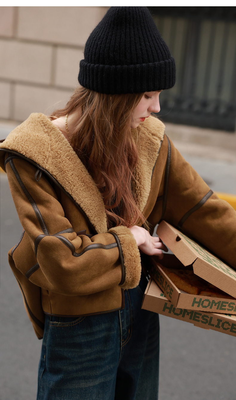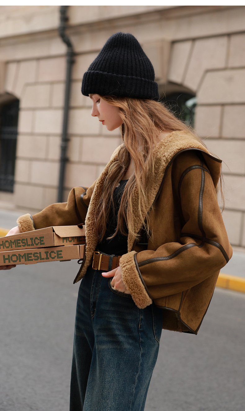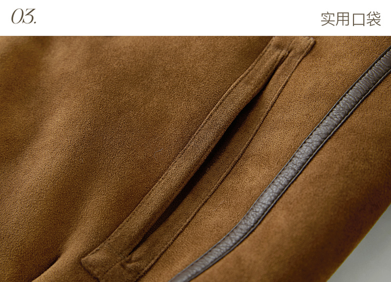 三彩2025冬季新款仿麂皮环保皮草连帽毛毛外套牛角扣M