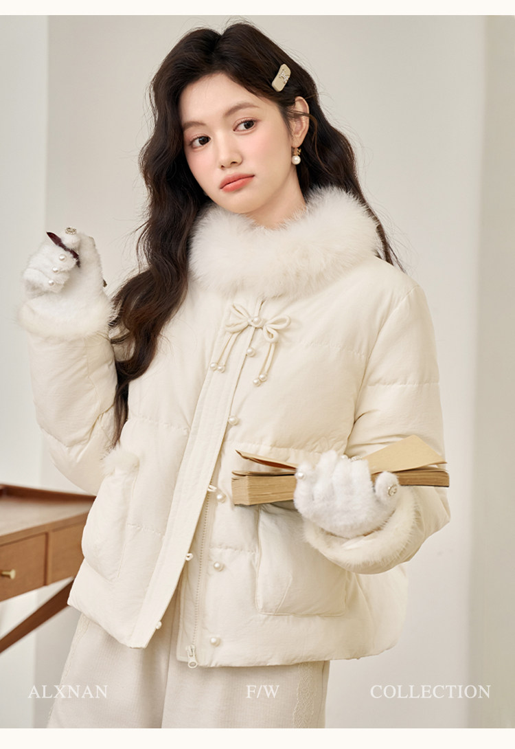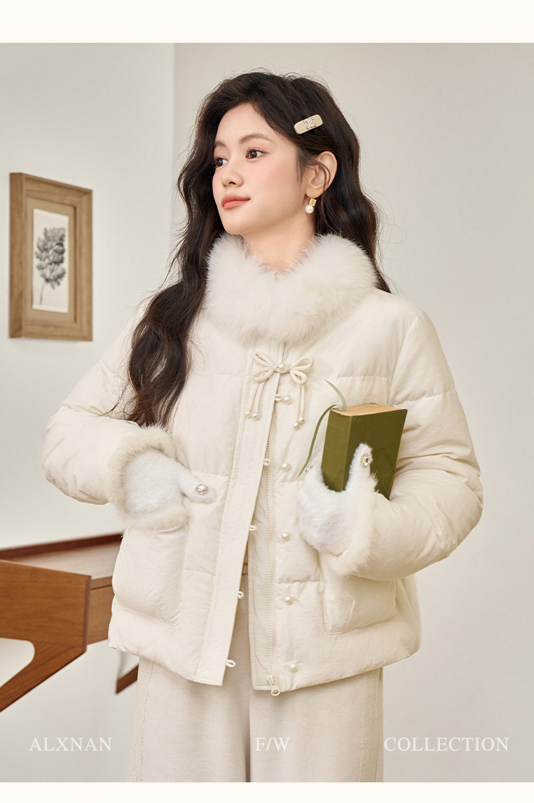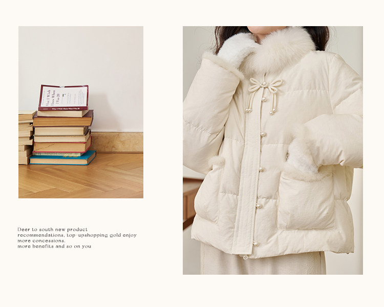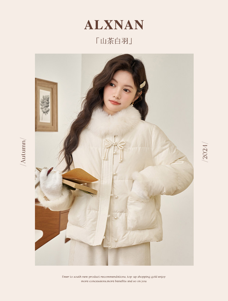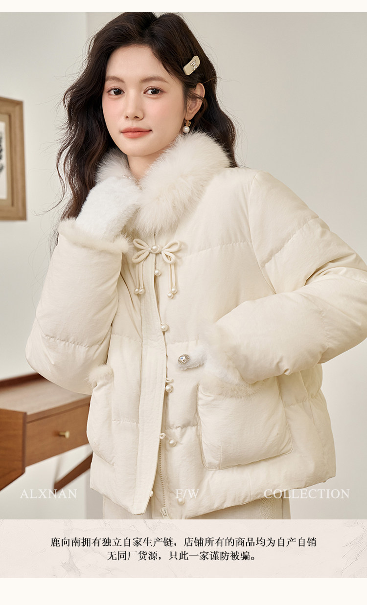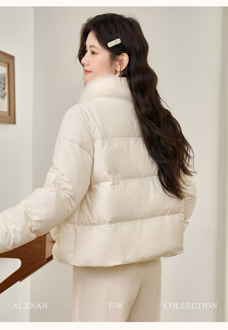鹿向南「山茶白羽」米杏色短款毛领羽绒服女2025冬季新款保暖外套