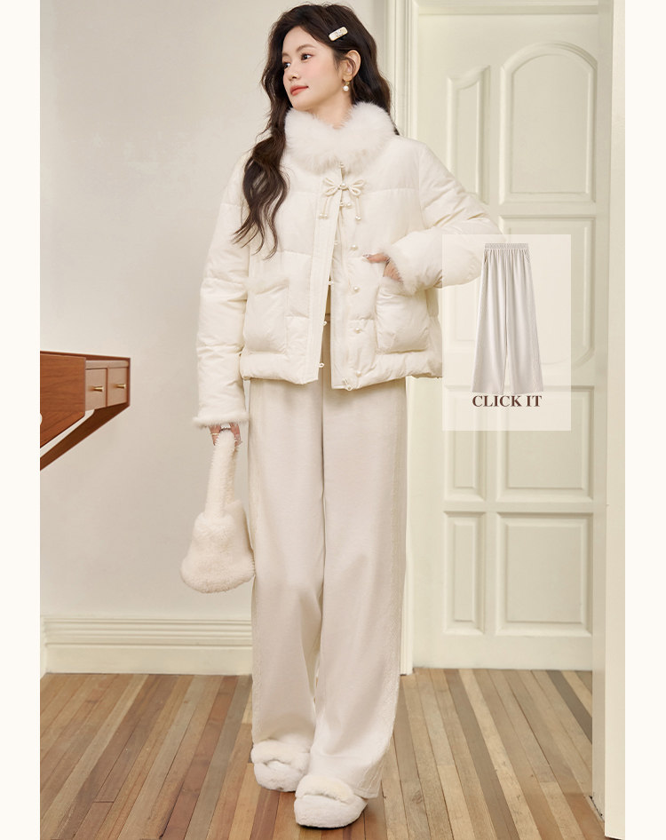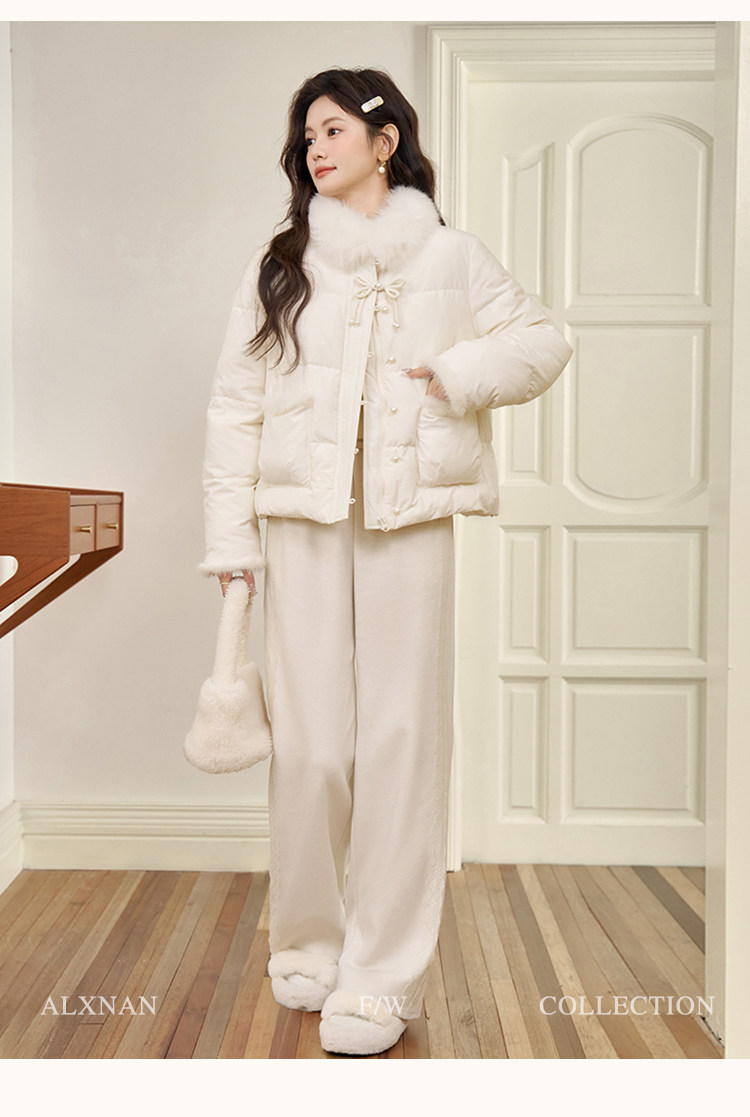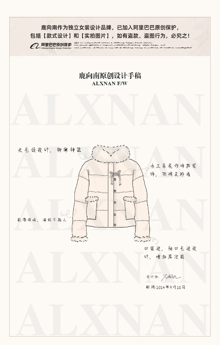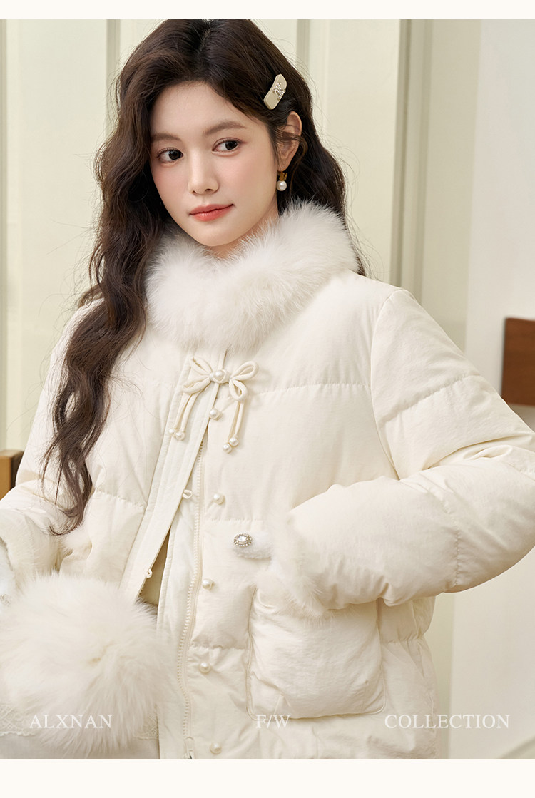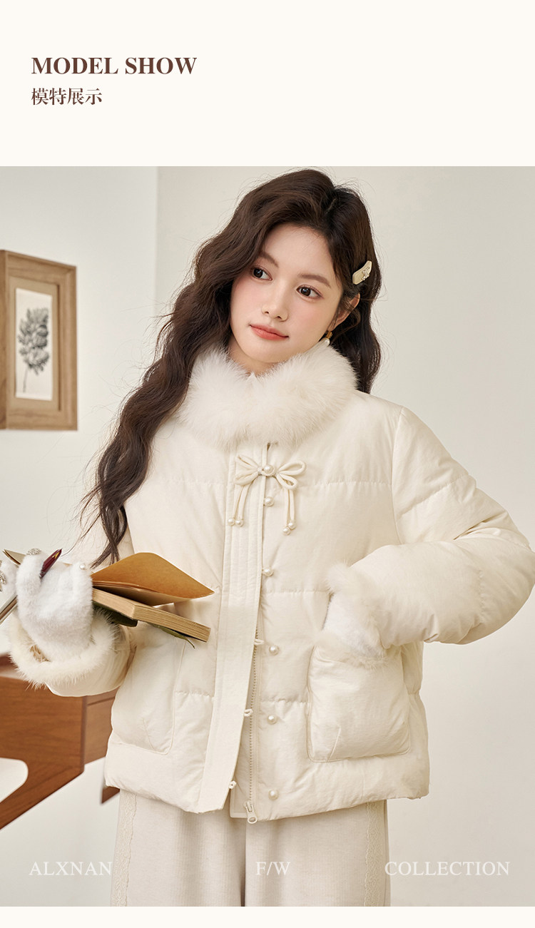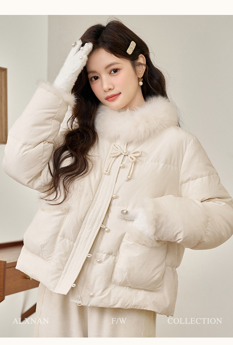 鹿向南「山茶白羽」米杏色短款毛领羽绒服女2025冬季新款保暖外套