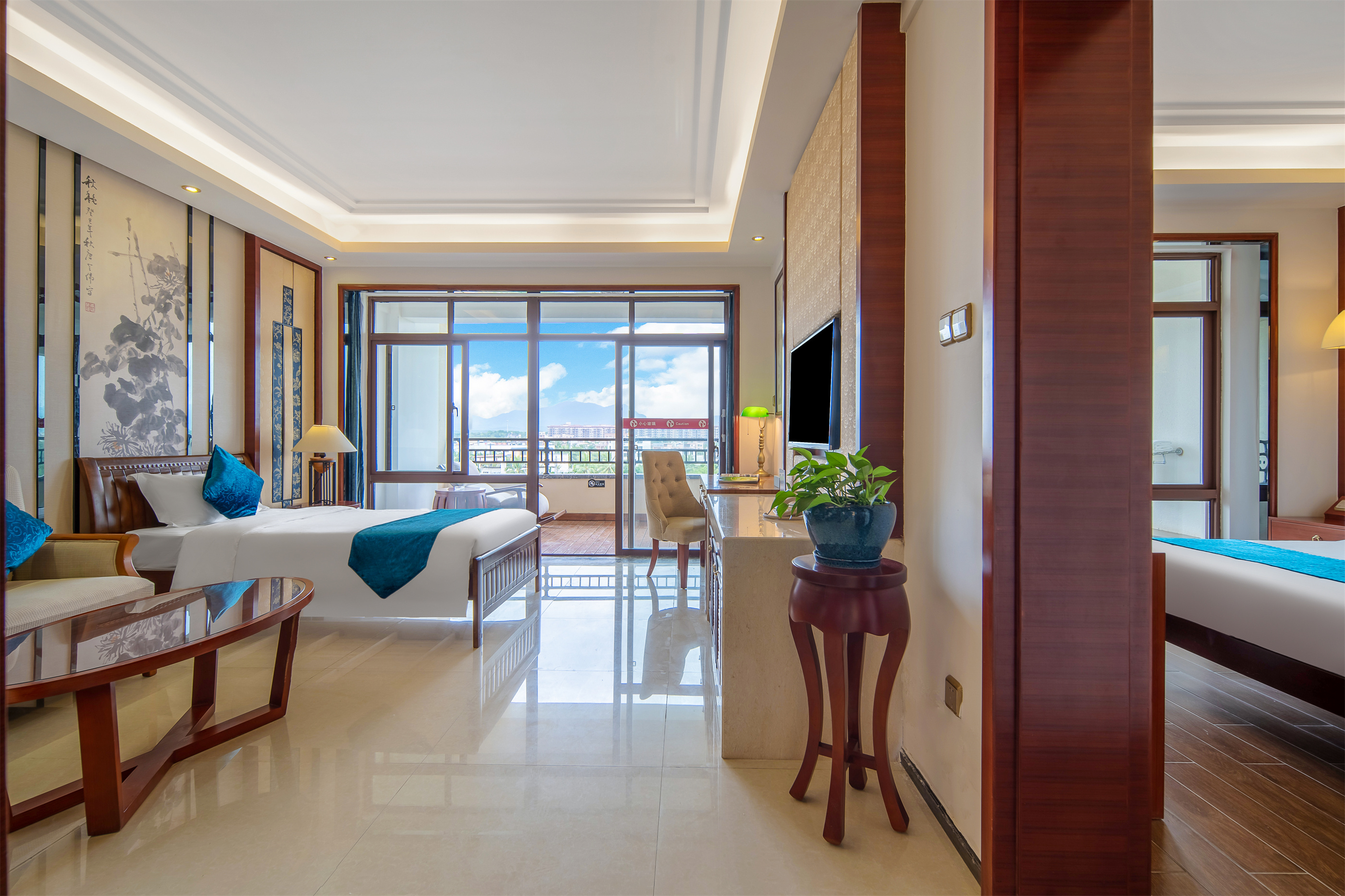 山景标间:60㎡,床型有大床/双床。