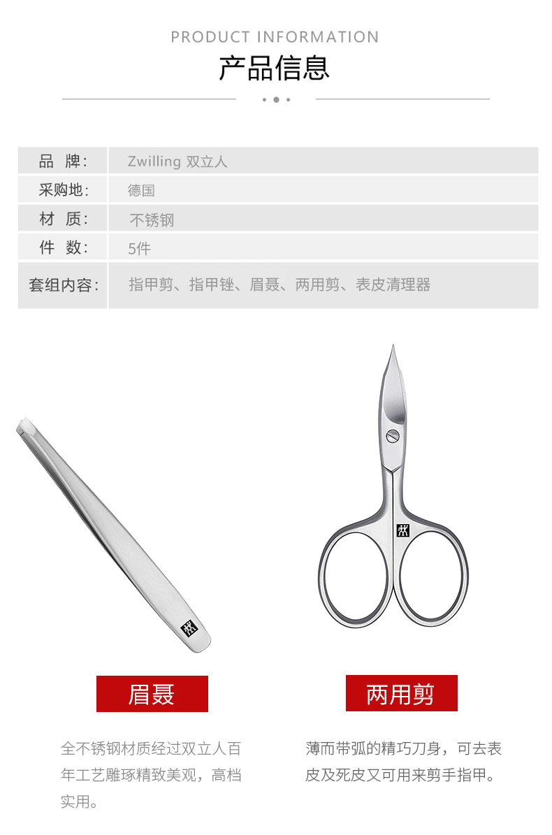 德国进口双立人美甲5件套(铝合金礼盒装)