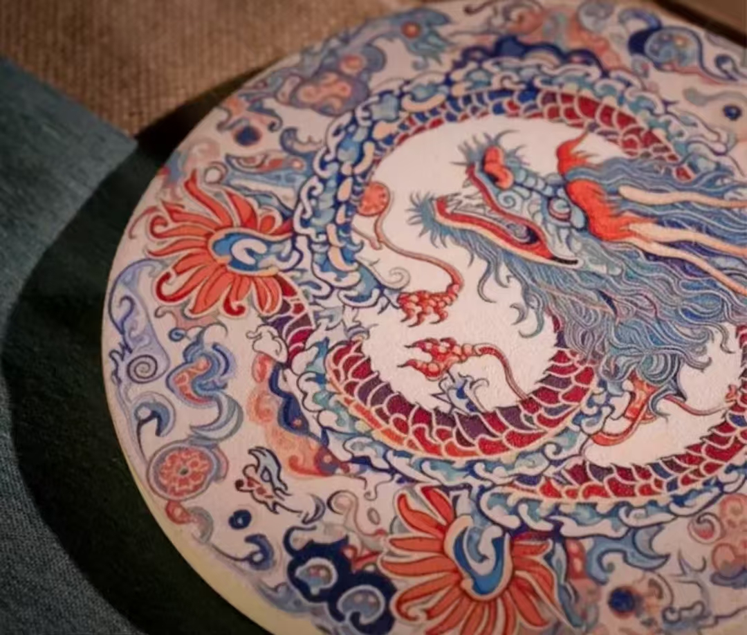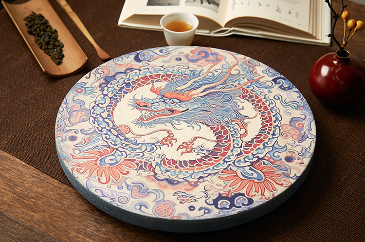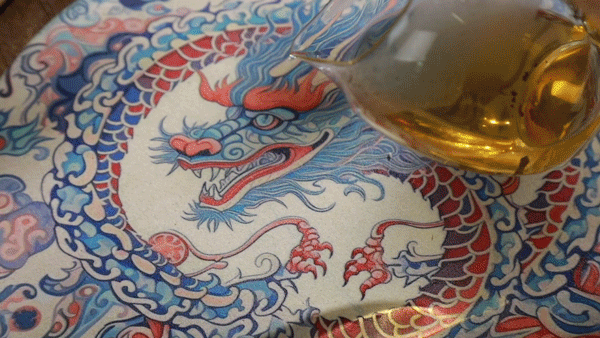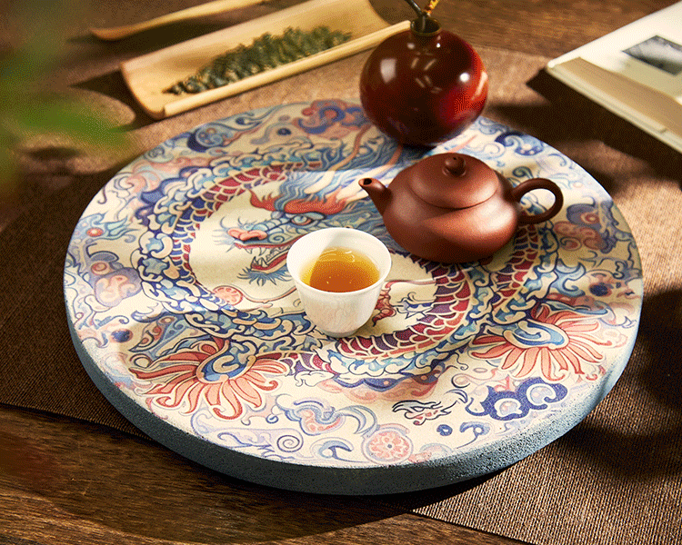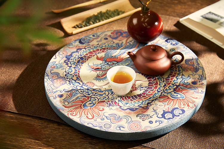 重粉绘就的青龙,与祥云作伴,盘绕成“团龙”之状,曾为明清两代皇室装饰,置于茶席,是高贵、尊荣的象征。