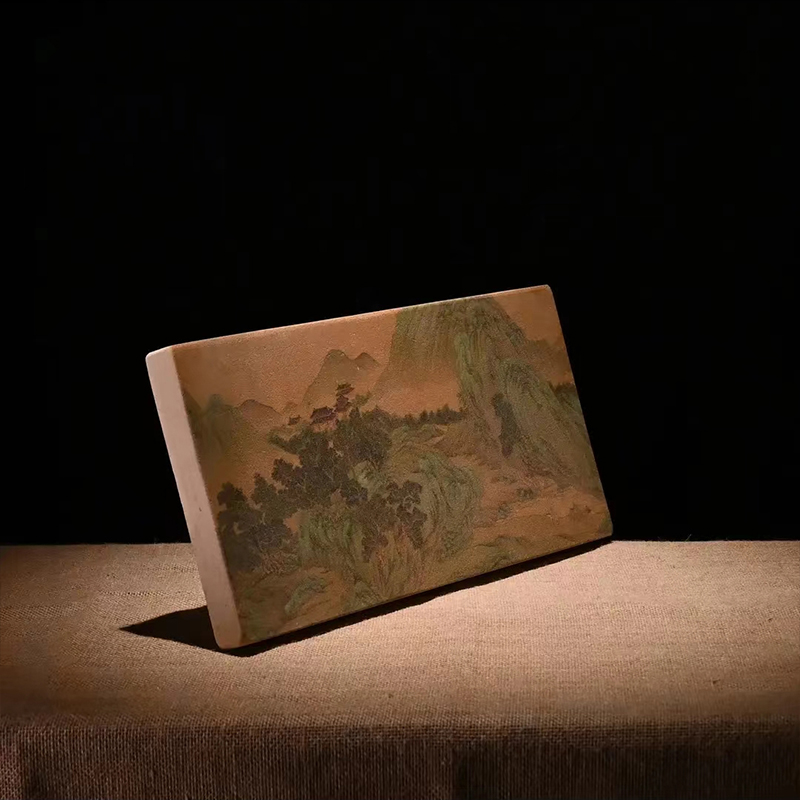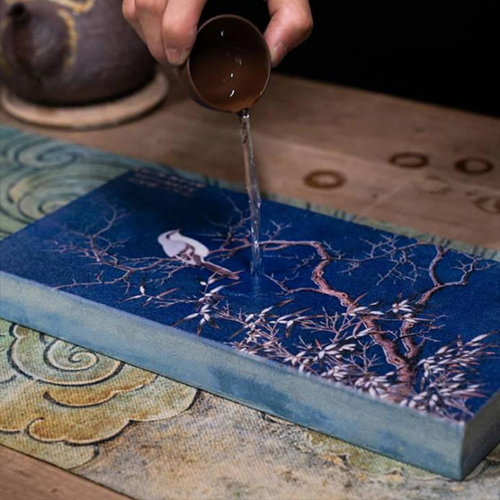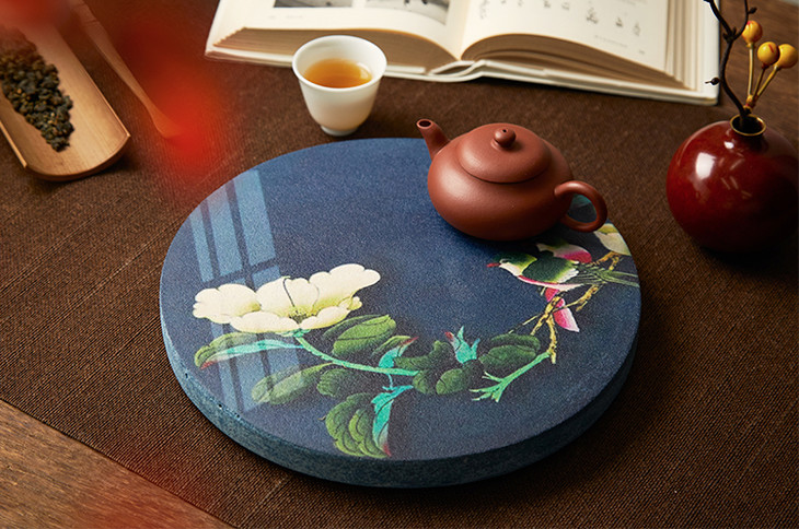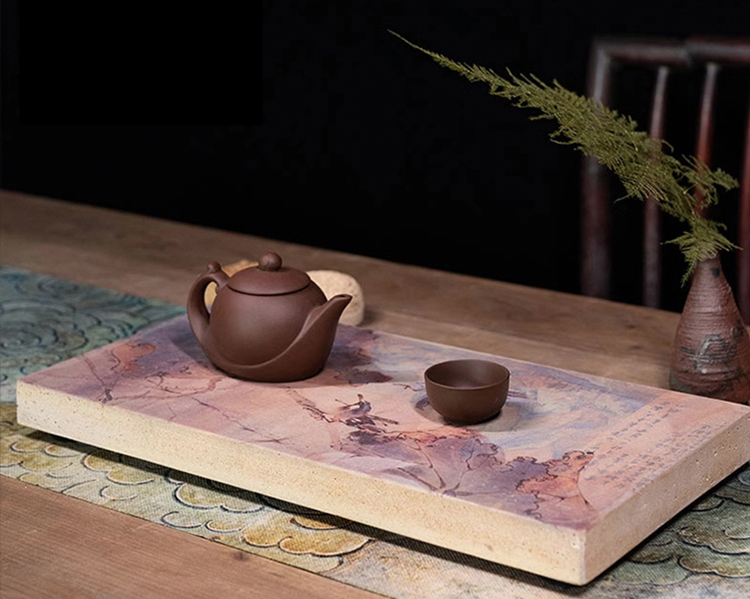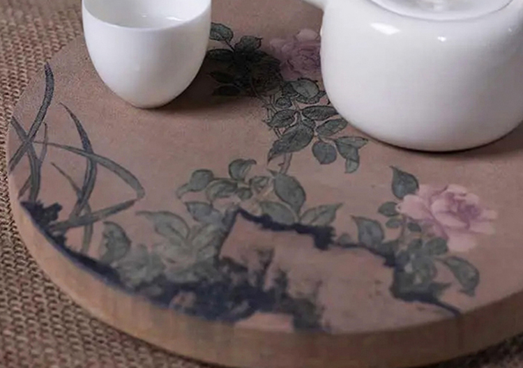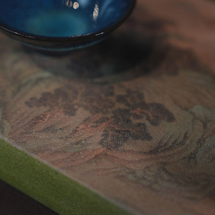 这次我们将古雅汉陶与现代印花科技结合,将古画印制在汉陶之上,一件件茶承如同一幅画,置于茶席之上,意趣盎然,更展现了难得的茶席古韵。