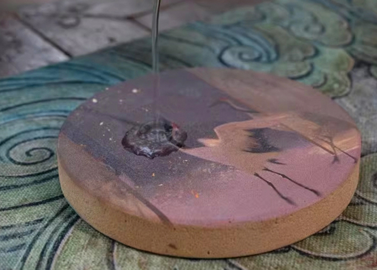 巴蜀汉陶制成的茶承,原本吸水性并不好,但是为陶而痴的王武老师,在三十多年的陶艺探索中,烧制出这款砂陶茶承——