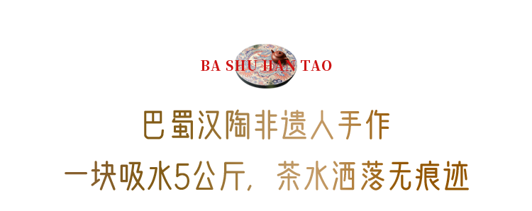 经过三十多年手艺沉淀,通过上万次试验,结合现代科学创新技术,终于赋活巴蜀汉陶,研发出这款“会呼吸”、“会讲故事”的吸水汉陶茶承。