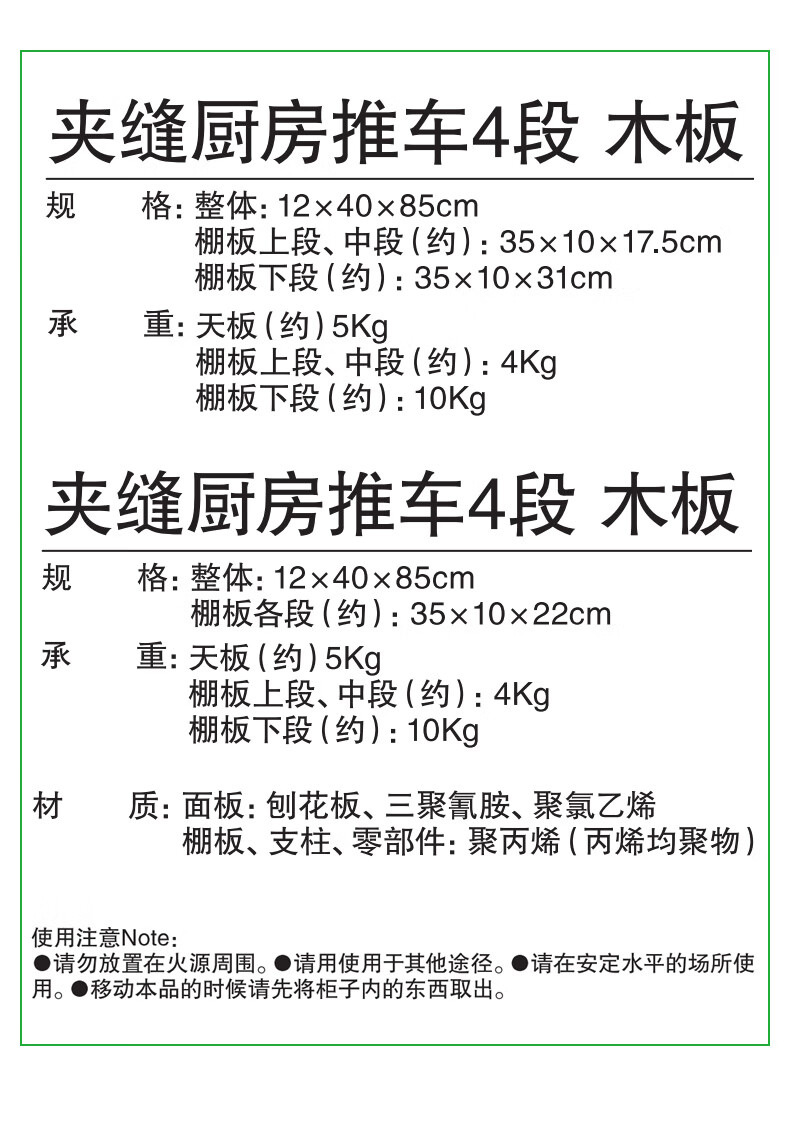夹缝厨房推车4段