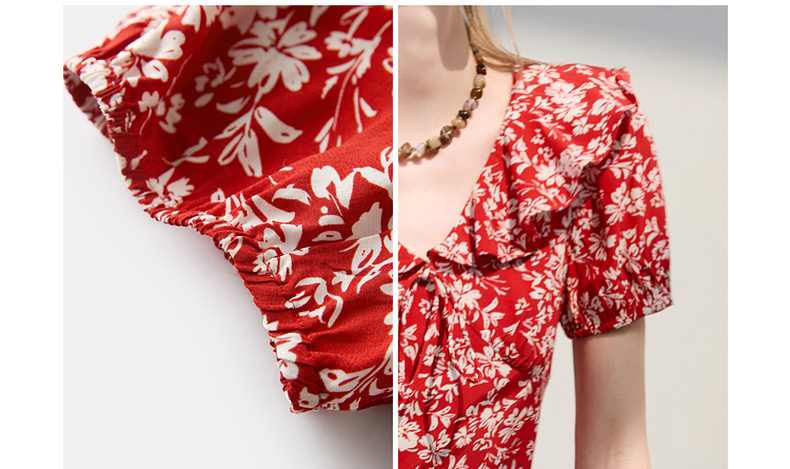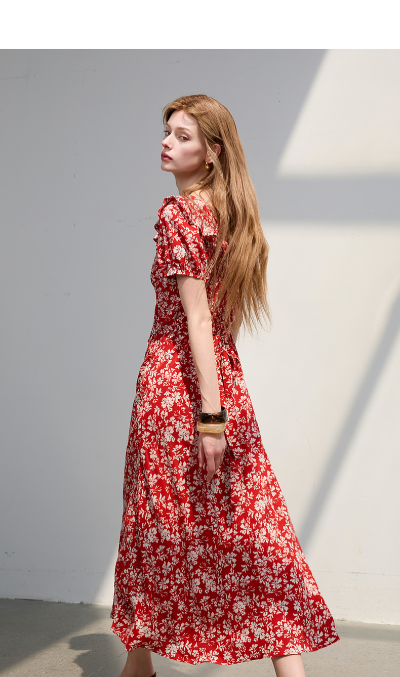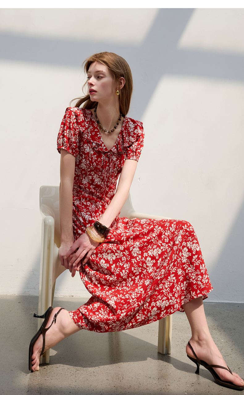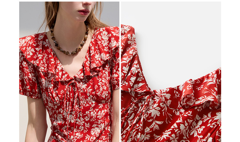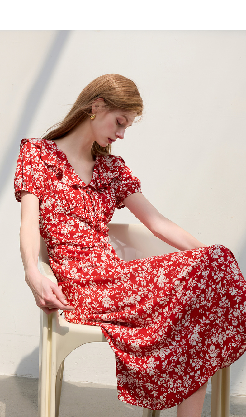 【仙女裙】三彩2025夏季新款荷叶边碎花裙法式收腰A字裙长裙系带优雅S