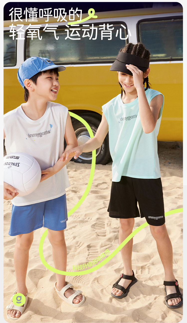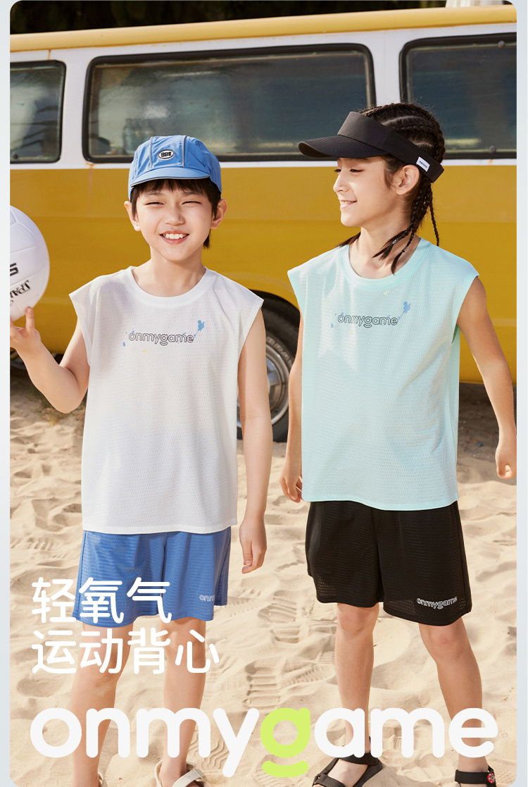 onmygame男童运动背心儿童吸湿排汗透气夏装2024新款男孩无袖T恤