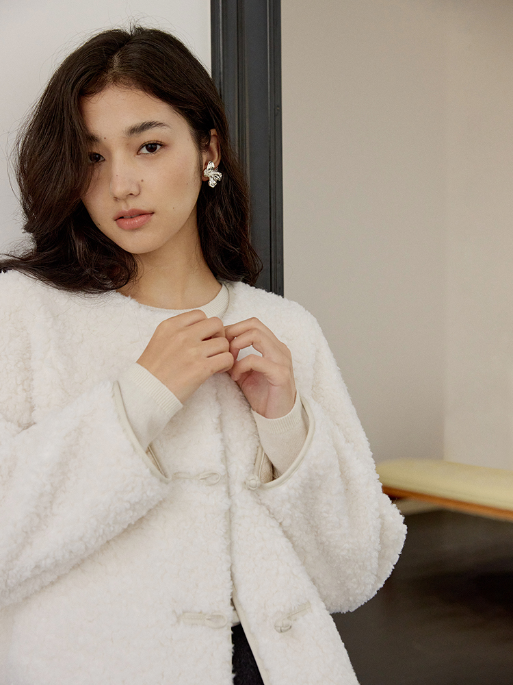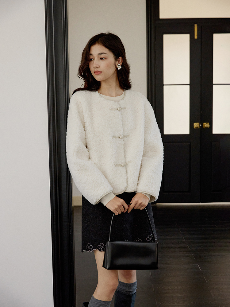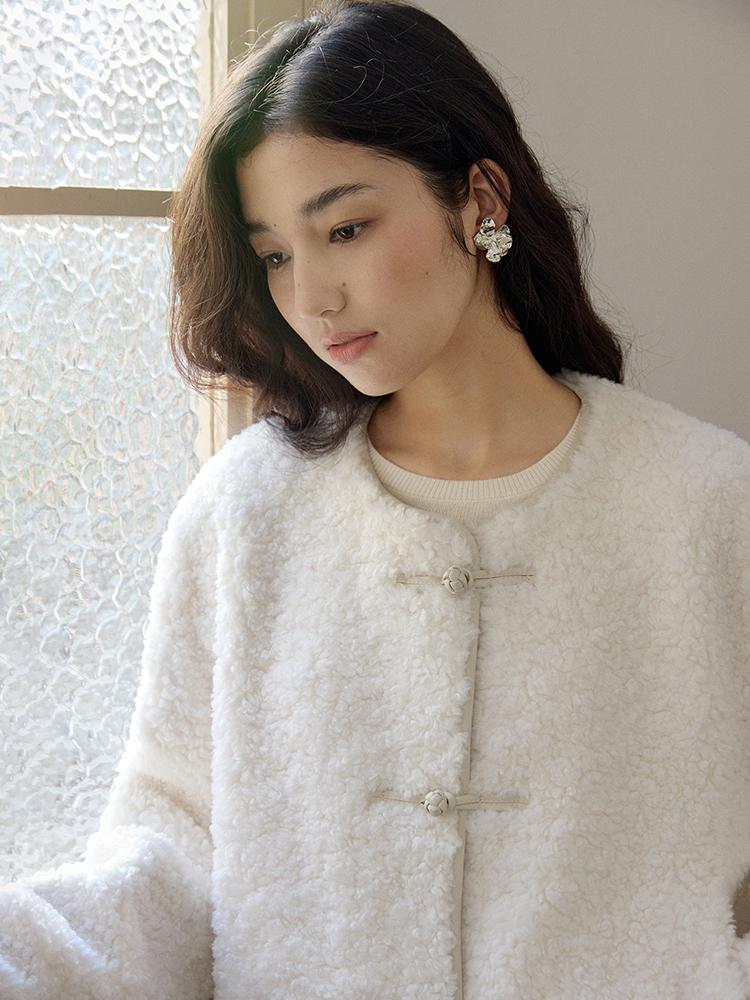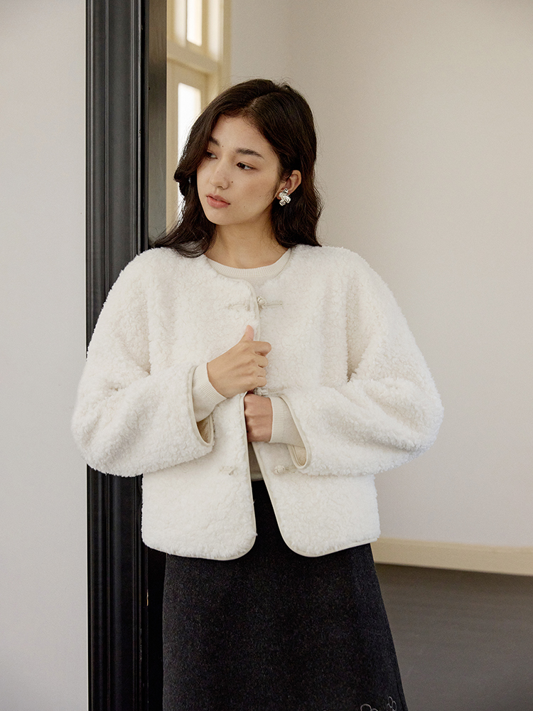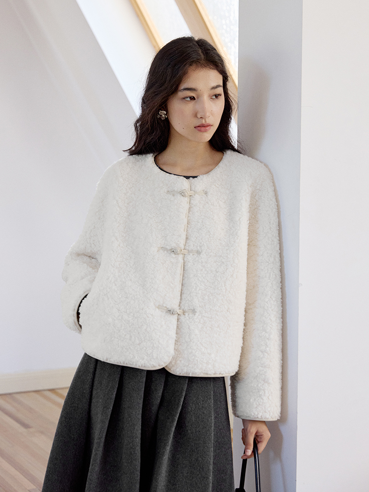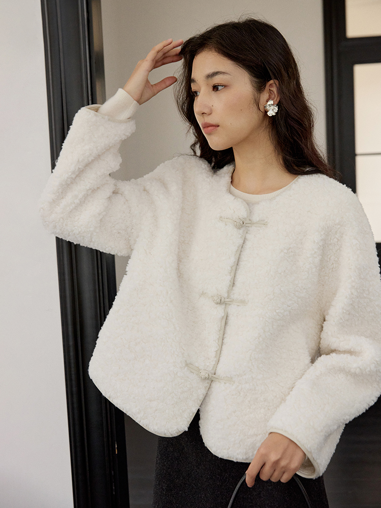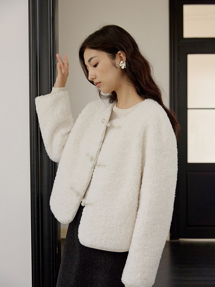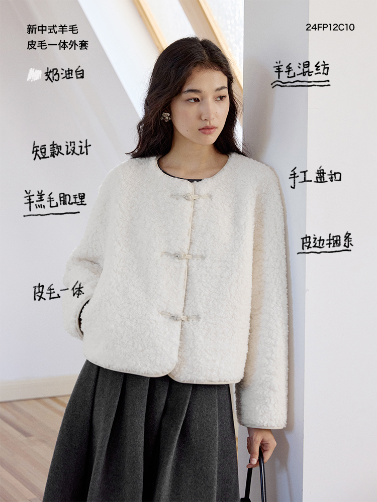 ForPoem 现货 24/FW原创设计新中式盘扣羊毛皮毛一体短款外套